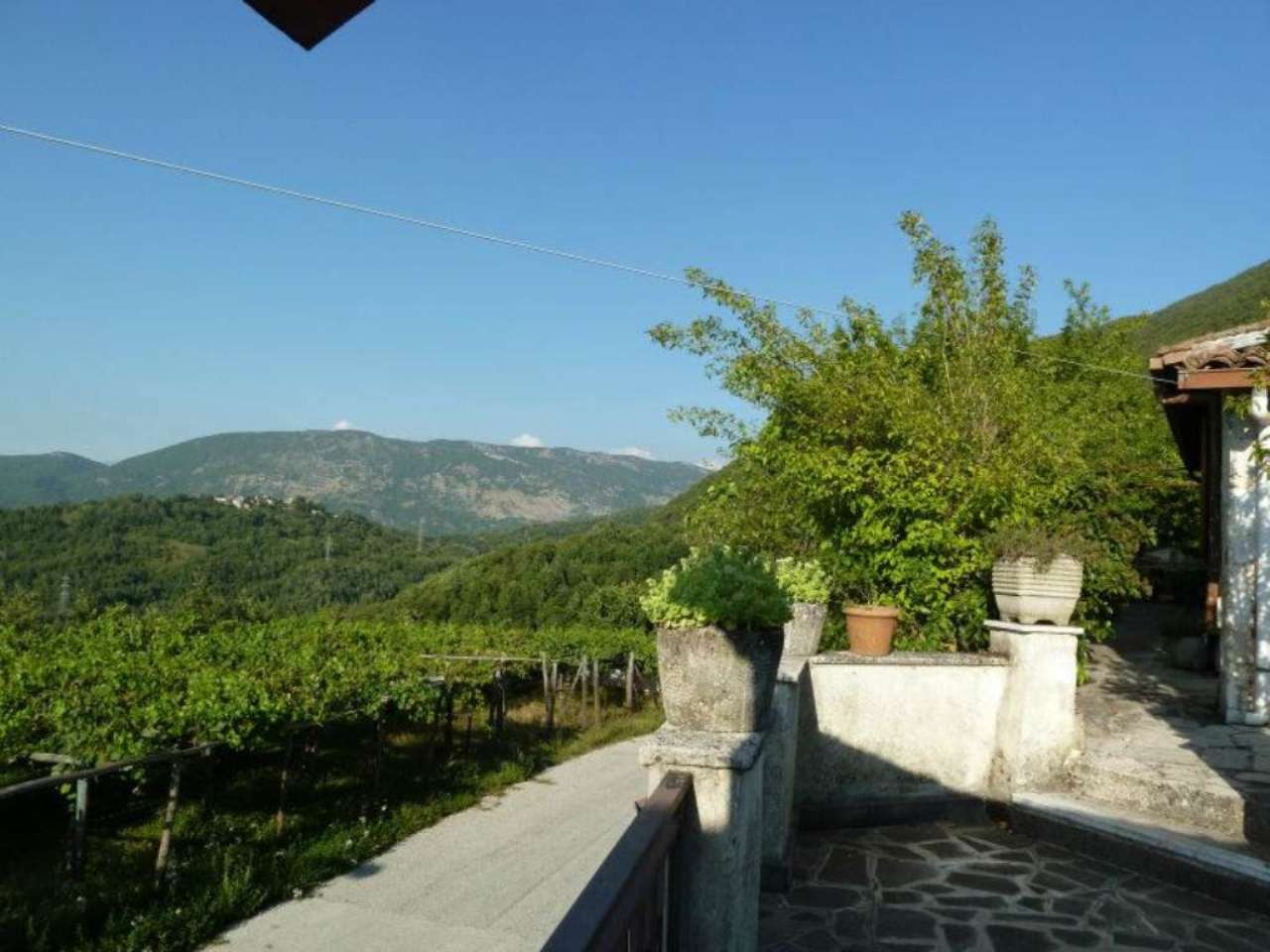 villino in Villaromana di Carsoli a mezza collina composto da ingresso ,sala con caminetto , cucina ,disimpegno , tre camere da letto ,bagno , tutto al piano ,terreno annesso , piazzale con tettoia , al piano strada garage triplo cantina e scala di accesso all'abitazione, riscaldamento autonomo in zona tranquilla alle pendici del monte Fontecellese , salubre , adatta per residenza e casavacanze.