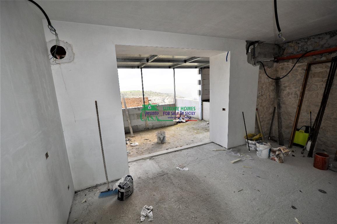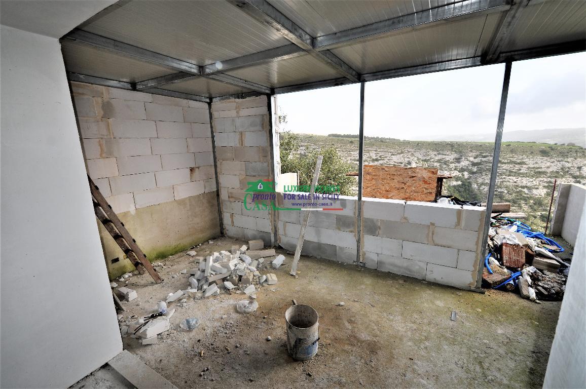 LA PRONTO CASA VENDE PANORAMICISSIMA CASA SINGOLA. L'IMMOBILE, IN UNO STATO AVAZATO DI RISTRUTTURAZIONE, SI SVILUPPA SU TRE LIVELLI; AL PIANO TERRA, ZONA LIVING CON FANTASTICA TERRAZZA SUI MONTI IBLEI, SERVIZIO E GARAGE; AL PRIMO LIVELLO, CAMERA MATRIMONIALE CON BAGNO E CAMERETTA, ULTERIORE SERVIZIO E BALCONE, ANCH'ESSO CON VEDUTA SULLA VALLATA.