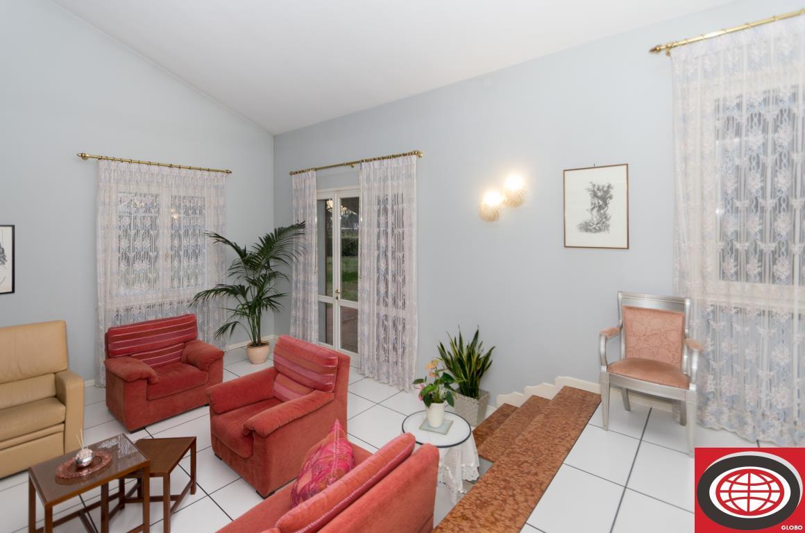 Si tratta di una villa indipendente con una superficie interna di circa 390 mq distribuita su più livelli ed immersa in un giardino privato, con spazi curati e sapientemente piantumati, che avvolge la casa su tutti i lati garantendo la massima privacy e indipendenza. L’unicità della proprietà non è solamente nel suo stile ma anche nella sua posizione, all’interno di un’estesa area verde, nelle immediate vicinanze di tutti i servizi e con la riviera romagnola a poca distanza. La proprietà presenta una zona giorno costituita da porticati, ingresso, grande e luminoso salone con camino, cucina abitabile , sala pranzo. La zona notte è composta da disimpegno, ampia camera padronale con balcone, seconda grande camera con balcone privato, una terza camera doppia, bagno di servizio e bagno padronale. Al piano interrato troviamo un'ampia taverna con grande camino centrale, garage doppio, aree per lavanderia, cantina, ripostigli. Completa il tutto un ampia zona sottotetto con due vani e bagno. Possibilita' di acquistare ulteriori 20.000 mq di terreno confinante con la casa. Per ulteriori info rivolgersi in ufficio. NB: Le presenti informazioni non costituiscono elemento contrattuale.