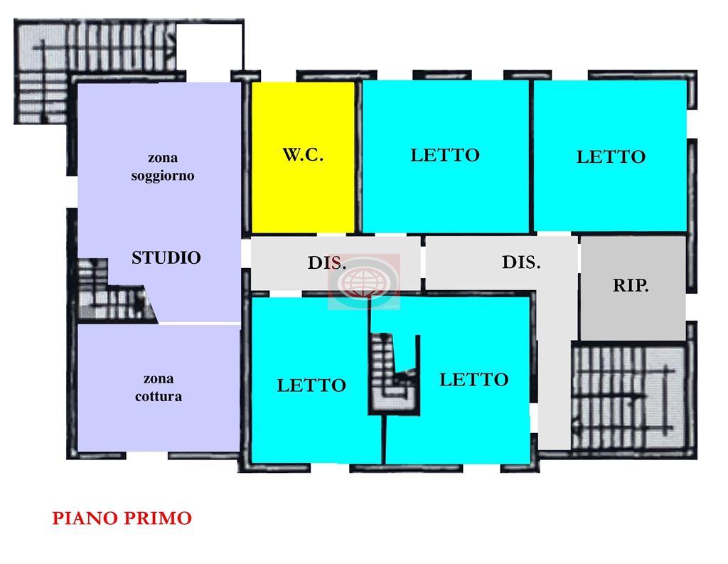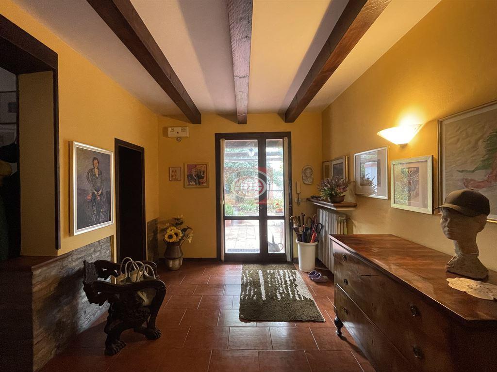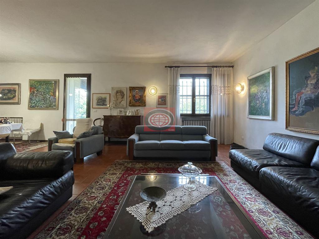 .. attualmente è una unica casa ( anche catastalmente ) e con un unico numero civico, nonostante i suoi spazi interni siano in realtà già suddivisi in due appartamenti, con impianti comuni. Per quanto riguarda il primo appartamento, al PIANO TERRA troviamo un ampio ingresso, una cucina/pranzo abitabile, un salone di oltre 50 mq. con camino, un bagno, e vari rispostigli; dalla maestosa scala interna si giunge poi al PRIMO PIANO dove troviamo 2 camere da letto ( di cui una di oltre 20 mq. ) ed un bagno; un'ulteriore scala ci porta poi al PIANO SOTTOTETTO dove troviamo un ampio vano molto alto e finestrato da poter sfruttare come camera da letto o studio/sala Hobby, e altri due vani ad uso ripostiglio. Sul fianco della casa è presente una scala esterna che permette di arrivare direttamente al PRIMO PIANO dell'altra ala della casa, dove troviamo il secondo appartamento così composto: soggiorno, cucina abitabile, 2 camere da letto ( di cui una di oltre 20 mq. ), bagno grandissimo ( con doccia e vasca ); da questo piano, tramite scala interna, si giunge al PIANO SOTTOTETTO dove troviamo un vano alto da poter sfruttare come camera da letto o studio/sala Hobby e altri due vani ad uso ripostiglio. Completano la proprietà, al PIANO TERRA, un garage di circa 50 mq., una zona molto ampia con splendida vetrata all'inglese da poter sfruttare come SALA HOBBY o SALONE ESTIVO, una lavanderia, la centrale termica, un ripostiglio/cantina e il PARCO PRIVATO. - NB: le presenti informazioni non costituiscono elemento contrattuale..