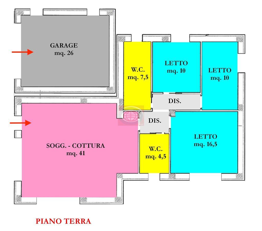 I suoi spazi interni abitabili, sapientemente distribuiti su unico piano, risultano così distribuiti: INGRESSO INDIPENDENTE su ampia zona giorno open space di 41 mq., n° 3 camere da letto ( 16,50 + 10 + 10 mq. ), n° 2 bagni finestrati; completa la proprietà un ampio GARAGE di 26 mq. e l' ampio GIARDINO PRIVATO ( circa 650 mq. ) con pergolato. Il livello delle rifiniture è OTTIMO, ovvero: cappotto termico da 10 cm., pannelli fotovoltaici ( 4 kw. ), impianto di riscaldamento a pavimento alimentato da pompa di calore, V.M.C. ( ventilazione meccanica controllata ), climatizzazione a inverter ( completa di macchinari e già funzionante ), aspirazione centralizzata ( completa di macchinari e già funzionante ), impianto di allarme ( completo di macchinari e già funzionante ), infissi in pvc bianco con doppi vetri, zanzariere a scomparsa, tapparelle in alluminio coibentato motorizzate, vasi sospesi, pavimenti e rivestimenti da 70 Euro/mq. complessivi ( ancora personalizzabili ). - NB: le presenti informazioni non costituiscono elemento contrattuale..