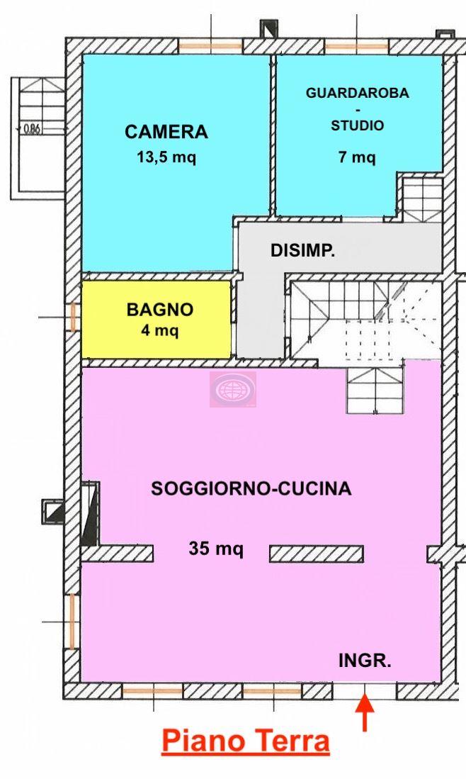 ATTUALMENTE il progetto prevede la seguente distribuzione: PIANO SEMINTERRATO: Cantina/taverna di 20 mq con possibilita' di accedervi anche dall'esterno. PIANO TERRA: ingresso INDIPENDENTE, zona giorno di 35mq con camino e stufa a pellets, GIARDINO PRIVATO di 1000 mq; PIANO TERRA/RIALZATO: disimpegno, camera letto doppia (13,5 mq) e bagno. PIANO PRIMO mansardato: 3 vani ripostiglio/letto di cui due matrimoniali e una singola( 18 -14 - 9 mq), un ampio bagno (7 mq circa). Possibilità di avere la massima indipendenza qualora la casa ospiti due nuclei familiari. - N.B.1: il prezzo indicato è riferito all'acquisto nello STATO ATTUALE (praticamente finita). - N.B.2: le presenti informazioni non costituiscono elemento contrattuale..