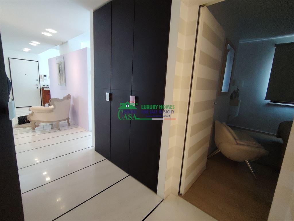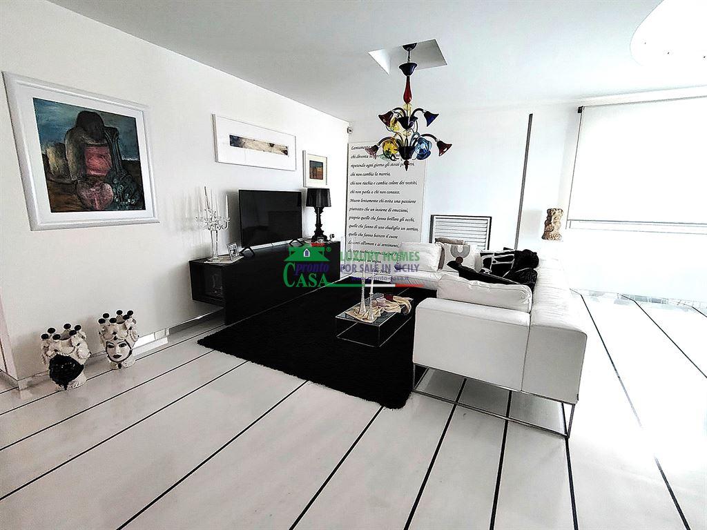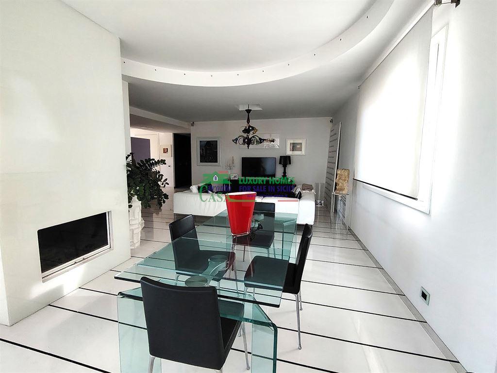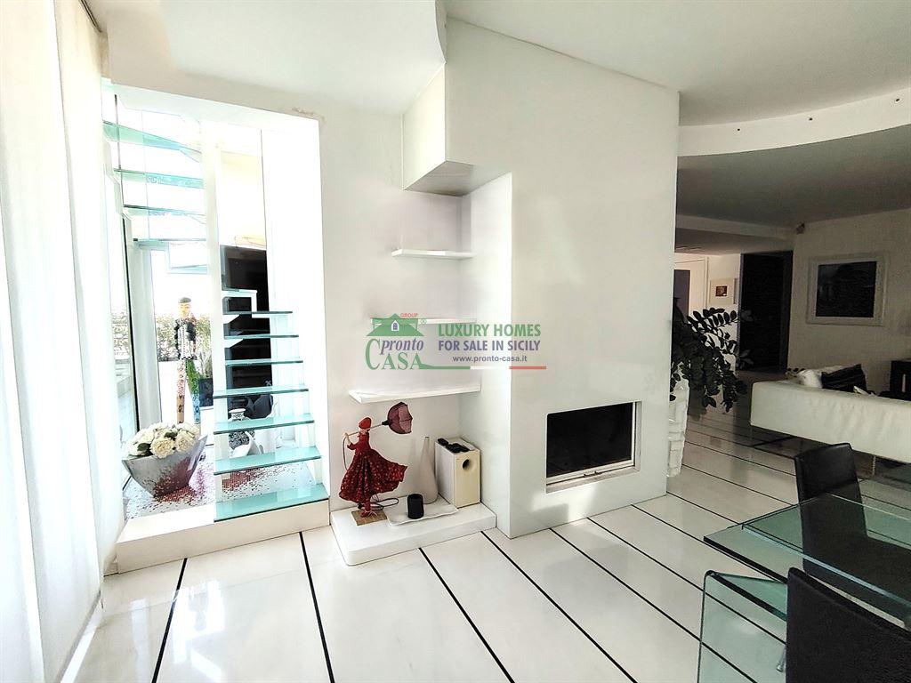 Pronto Casa Group propone in vendita nel cuore di Comiso, a pochi passi dal centro, un raffinato attico e super attico posto al 5° piano di circa 193 mq, dotato di ascensore e porta blindata situato in un moderno palazzo di prestigio. CARATTERISTICHE PRINCIPALI - Zona notte (quinto piano): - 3 camere da letto con bagni in camera e cabine armadio; - Ampio open space con camino e boiserie su misura; - Cucina nascosta con dispensa sottotetto; - Bagno/lavanderia discreto e funzionale.