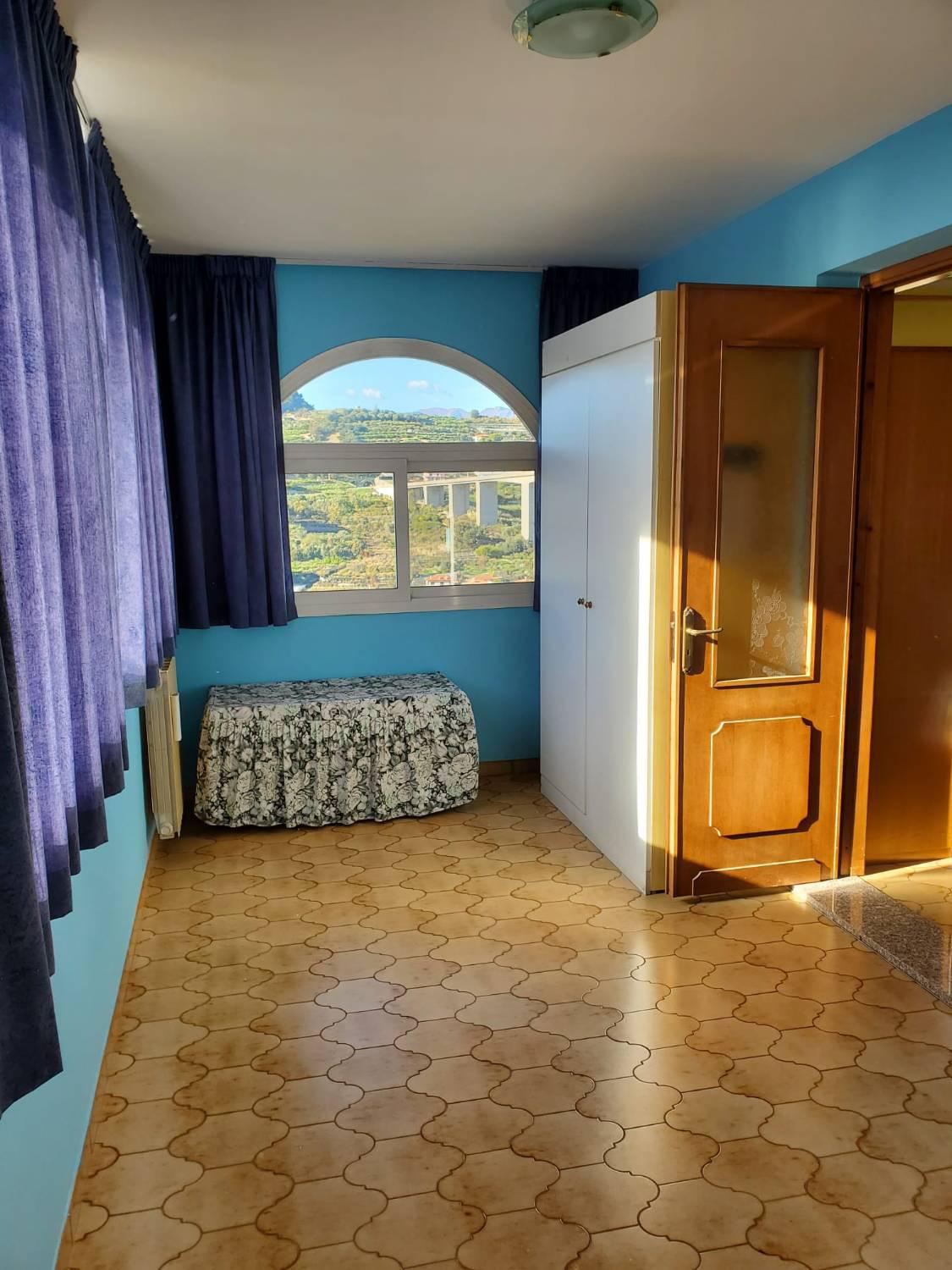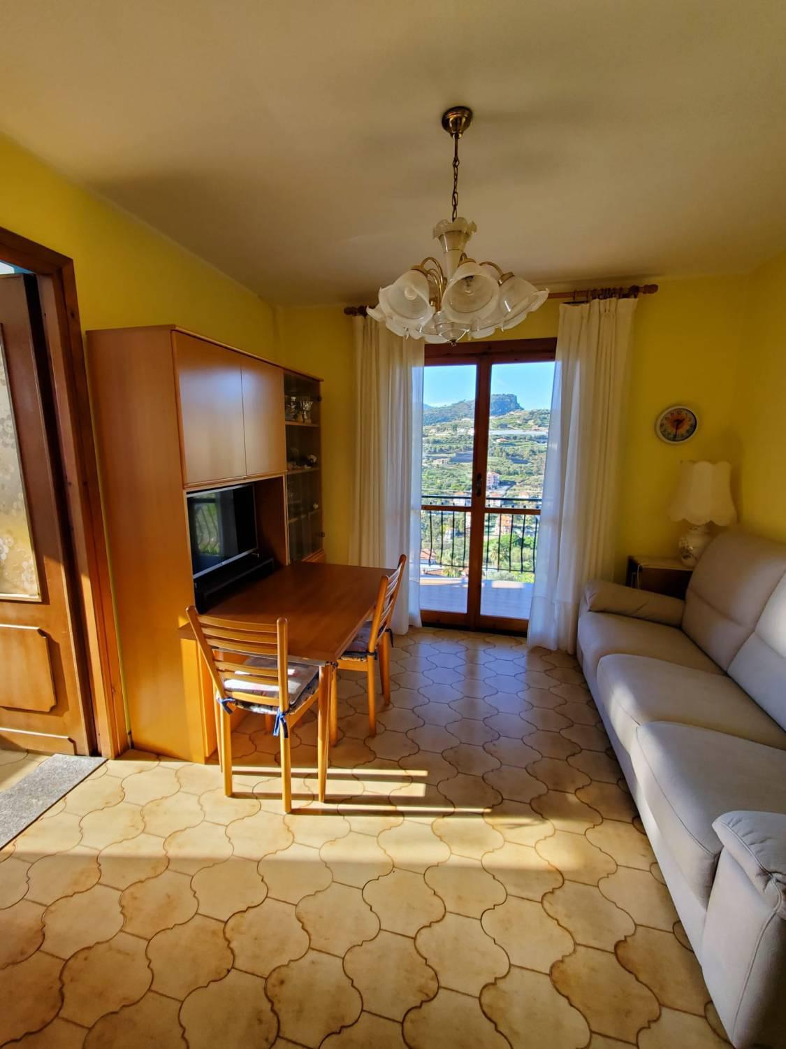 Al piano primo abitazione composta da ingresso , sala con balcone vista aperta e mare , cucina semi abitabile ,due ampie camere da letto di cui una con terrazzo , bagno. completa la proprietà terreno pianeggiante di circa 500 mq , 2 posti auto , e cantina No spese condominiali - riscaldamento autonomo l'immobile si presenta in buono stato Per visitarlo o informazioni chiamare al 349 63 75 849 ReportCasa Via Roma ,34 Ventimiglia.