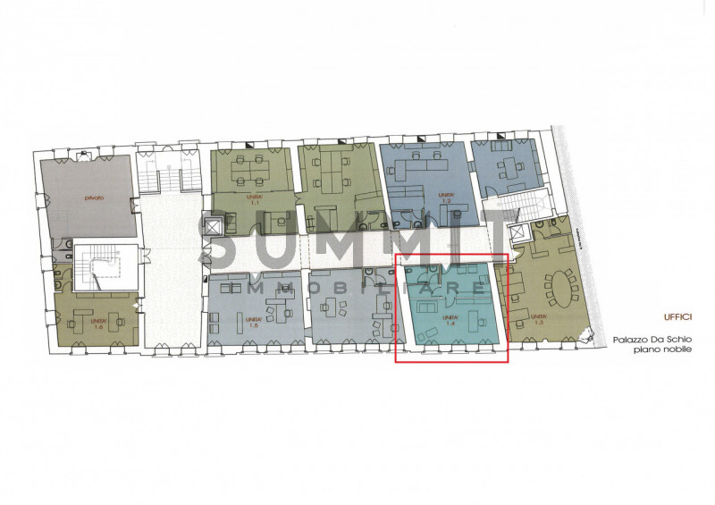 56 al primo piano nobile di un storico palazzo ristrutturato del centro città. Nello stesso piano troviamo altri due uffici di diverse dimensioni, tutti con una vista privilegiata su una delle vie principali del centro e sul parco verde del residence. L'accesso agli uffici avviene tramite uno spazioso vano scala e sono anche serviti da ascensore. Il corpo del palazzo, costituito da un ampio nucleo centrale e da due torrette angolari con terrazza e balaustra, ospita uffici ed appartamenti accuratamente rifiniti che occupano il piano nobiliare e il secondo piano. C'è la possibilità di avere il posto auto coperto singolo o doppio nell'interrato. Finiture: Le finiture sono state fatte con materiali di pregio secondo la migliore tradizione costruttiva. Le utenze dell'acqua e del riscaldamento sono centralizzate ma con contabilizzatore, i termoconvettori (fancoils) sono predisposti per il riscaldamento e per l'aria condizionata. Ogni ufficio ha il suo contatore autonomo per l'energia elettrica. Tutti gli uffici sono dotati delle più innovative tecnologie attuali. --- annuncio pubblicato con GESTIONALEIMMOBILIARE.it.