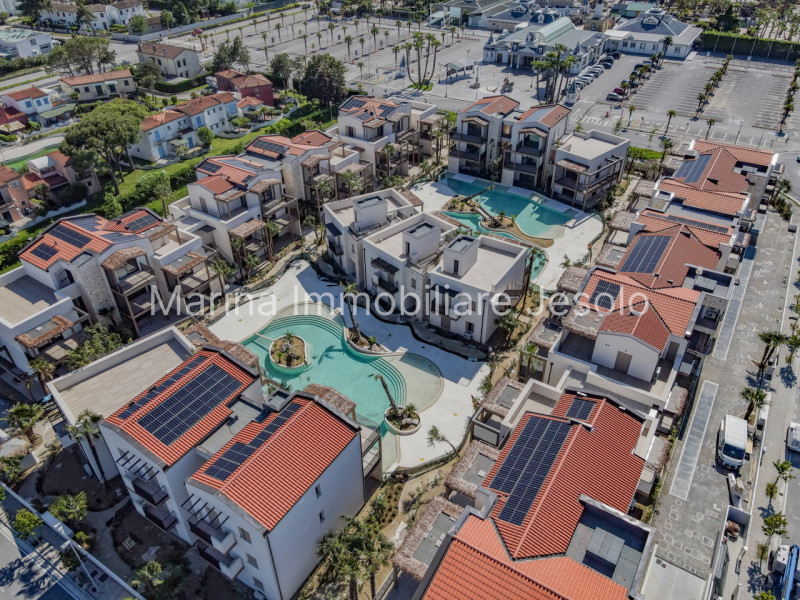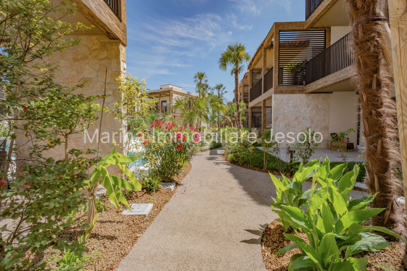 Gli appartamenti disponibili offrono una superficie di oltre 75 mq e si distinguono per i loro spazi abitativi ben distribuiti. Le soluzioni includono un comodo living con cucina a vista, due o tre camere generose e doppi servizi, ideali per famiglie o come investimento vacanziero. All'esterno, il complesso residenziale vanta una corte comune dedicata all'area relax/solarium con piscine circondate da sabbia bianca e grandi palme che creano un'atmosfera tropicale unica. Ogni unità dispone anche di un terrazzo/solarium attrezzato perfetto per pranzi e cene all'aperto. In aggiunta alla qualità degli interni, la proprietà è dotata di garage (anche doppio) ; serramenti in PVC garantiscono isolamento termico ed acustico; videocitofono per maggiore sicurezza; impianto di raffrescamento/riscaldamento in pompa di calore assicura comfort tutto l’anno. Non perdere questa opportunità imperdibile! Contatta subito l’agenzia Marina Immobiliare Jesolo per ulteriori informazioni e prenota una visita. a partire da : --- annuncio pubblicato con GESTIONALEIMMOBILIARE.it.
