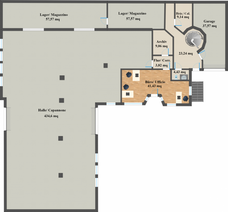 Al primo piano si trova un appartamento composto da tre stanze, soggiorno, cucina, bagno, ripostiglio, WC e una generosa terrazza. Completa l'offerta un capannone di circa 400 mq, cortile e giardino. Sup. Commerciale: 547,28 m2 Sup. Netta: 187,68 m2 Sup. Capannone: 434,60 m2 Per maggiori informazioni: Agenzia LIFANDI Egna +39 0471 812760 office2@lifandi.it --- annuncio pubblicato con GESTIONALEIMMOBILIARE.it.