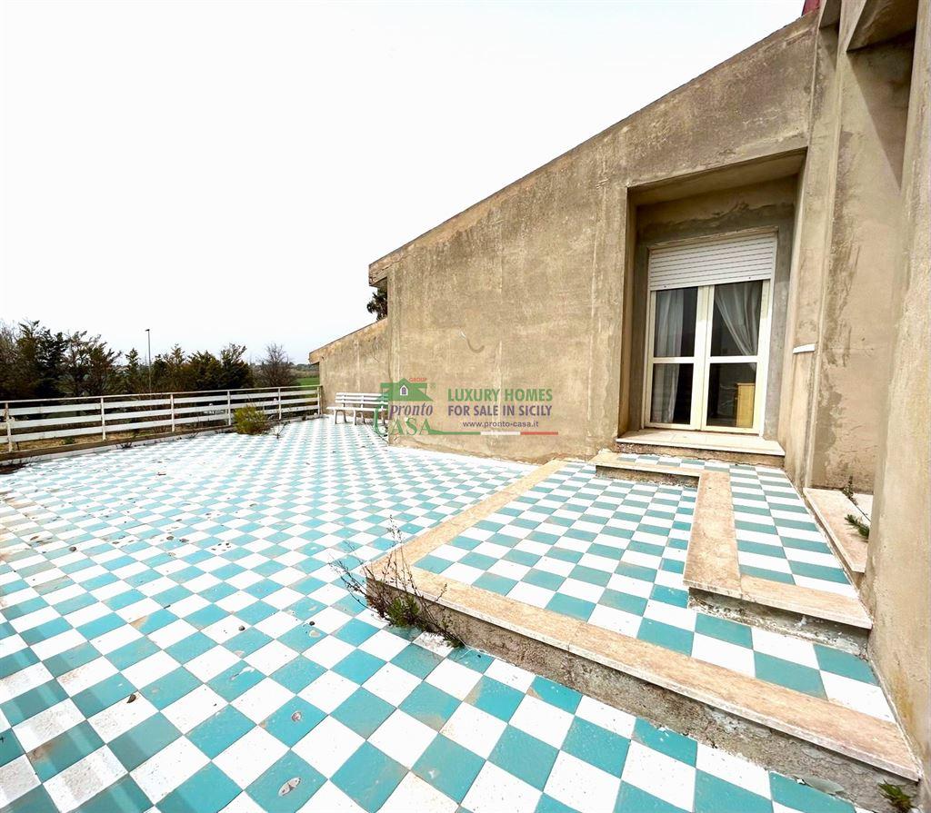 Lo stato attuale dell'immobile è libero, pronto per essere abitato da chiunque decida di trasferirsi in questa dimora, circondata dalla natura con i massimi comfort. L'immobile è stato costruito nel 1986 e necessità delle ristrutturazioni e riammodernamento che possono portare alla luce il suo reale potenziale. La villa, con un ampio ingresso ed un viale di pertinenza offre la possibilità di accedere con l'auto per poter raggiungere la struttura molto facilmente. Da un portone che affaccia sul viale composto da una piccola scalinata accediamo al piano primo dove con una superficie interna di mq circa 250 troviamo un soggiorno/cucina open space con camino a legna, adiacente veranda di pertinenza, tre camere da letto , due servizi, una lavanderia con ripostiglio. Al piano terra con una superficie anche esso di mq 250 circa troviamo allo stato rustico un altro appartamento da rifinire in base alle vostre esigenze. Altro valore aggiunto alla villa è la presenza di una magnifica piscina con struttura in cemento armato con jacuzzi, completa di docce e servizi. La casa dispone di spazio verde circostante di mq 5000 circa, composto da ampie verande per essere sfruttate durante le calde serate estive e momenti di relax con i propri cari. Sono presenti al suo interno alberi di agrumi e piante di adornamento giardino. Per maggiori informazioni ed eventualmente concordare una visita non esitate a contattarci allo 0932/964673 o al 366-2458595..