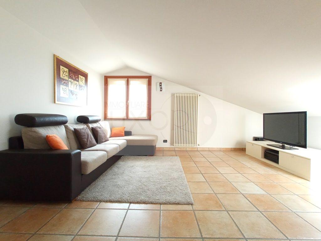 ed è composta da una luminosa ed elegante zona giorno esposta a Sud, con 3 portefinestre che accedono al terrazzino panoramico. La cucina è semiabitabile, aperta sul soggiorno. Un disimpegno ci conduce al reparto notte, dove troviamo la suite matrimoniale con bagno privato dotato di doccia, cabina armadio e balcone privato, la cameretta ed infine il bagno con vasca. Una comoda scala a due rampe dal soggiorno ci porta al sottotetto di 110 mq, dove l’altezza del punto centrale è di 2,40 mt. e scende a 30 cm., di cui sfruttabili sono 40 mq. Qui troviamo una stanza pluriuso e una lavanderia. La casa è in perfetto stato di manutenzione ed è rifinita con un elegante parquet in tutti gli ambienti nel piano abitativo ed una praticissima ceramica nel piano sottotetto. L'immobile viene consegnato quasi tutto arredato, ovvero con la cucina in muratura, il camino con l'arredo fisso in cartongesso nel soggiorno, la cabina armadio della camera matrimoniale e gli arredi bagno. Completa la proprietà un box doppio in larghezza, da quantificare OBBLIGATORIAMENTE a parte in euro 25.000,00. Monticello Brianza è un piccolo comune con una densità demografica di circa 3.000 abitanti, situato nel cuore della Brianza, ottimo collegamento con le principali arterie per raggiungere Lecco, Monza, Milano. INDICE DI PRESTAZIONE ENERGETICA NON RINNOVABILE 180,62 kWh/m2a. CLASSE ENERGETICA D, INDICE DI PRESTAZIONE ENERGETICA RINNOVABILE 2,85 kWh/m2a. VENDI CASA? SCEGLI I PROFESSIONISTI!.