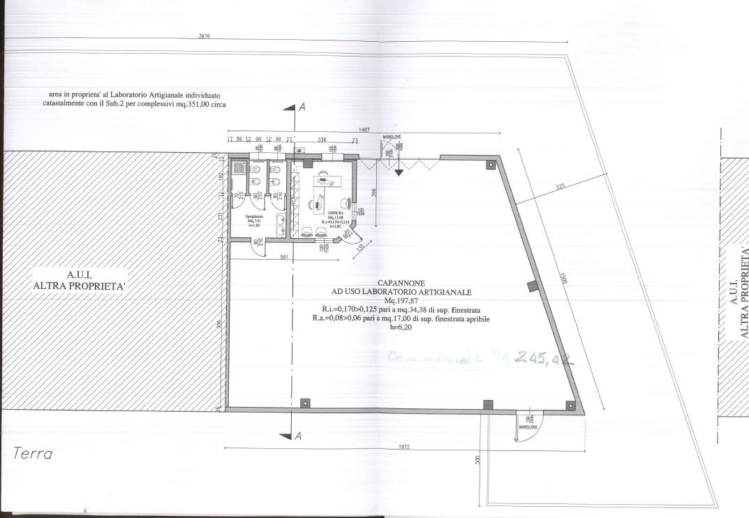 - Superficie totale: 250 mq, allo stato grezzo avanzato, pronto per essere personalizzato secondo le esigenze della vostra attività. - Ingresso carraio: Ampio e comodo, ideale anche per mezzi di grandi dimensioni. - Corte esterna: Circonda l'immobile su tre lati e offre un vasto spazio di 350 mq per manovre e parcheggi. Ambiente di lavoro: - Vasto spazio operativo di 197 mq: Progettato per ospitare una varietà di macchinari, attrezzature e materiali. Le ampie finestrature alte garantiscono una buona illuminazione naturale, migliorando le condizioni di lavoro. - Ufficio: 13 mq di spazio confortevole e funzionale per gestire le attività amministrative e di coordinamento. - Zona spogliatoio: 7 mq, dotata di doppi servizi, pensata per garantire il massimo comfort al personale con spazi adeguati per cambiarsi e rinfrescarsi. Opportunità Questo capannone artigianale rappresenta un’occasione per chi cerca uno spazio versatile e ben posizionato. La sua configurazione spaziosa e le numerose possibilità di personalizzazione lo rendono adatto a diverse tipologie di attività artigianali e produttive. Composizione: Piano Terra - Zona lavoro mq 197 - Ufficio - Bagno - spogliatoio Contattaci per la visita: infoline 054480462 e-mail info@agenziacontarini.it.