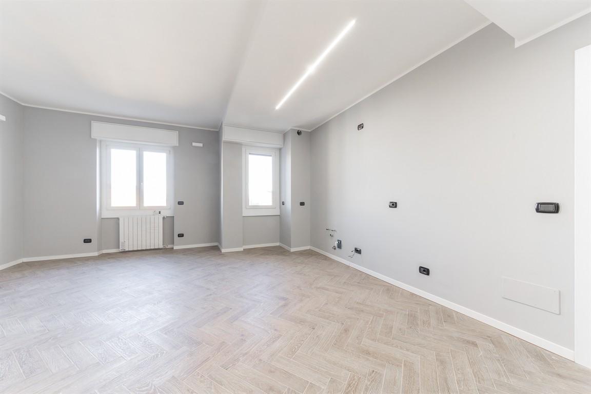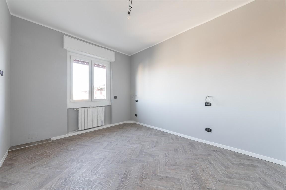 BOVISA / VIA CONSOLE MARCELLO Ottimo acquisto!!! In palazzo elegante completamente ristrutturato, oggetto di una completa e attenta riqualificazione, vendiamo al sesto piano, appartamento di tre locali di mq 105. L'appartamento è stato appena ultimato e mai abitato, composto da: ingresso, salone con cucina a vista e balcone, ampio disimpegno che conduce alla zona notte, prima camera matrimoniale con stupendo bagno in marmo, seconda camera da letto matrimoniale e ampio bagno, locale lavanderia.