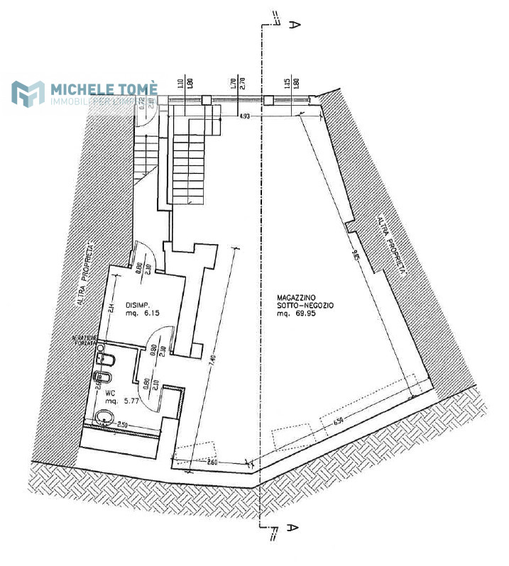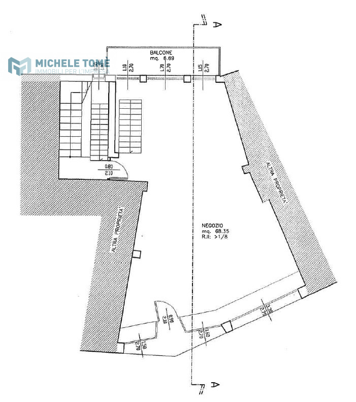 Il negozio si trova nel centro storico del paese e dispone di un'ampia vetrata sul fronte. La superficie complessiva è disposta su due livelli; al piano terra sono presenti 70 mq disposti in un unico locale, al piano interrato, dove sono presenti anche i servizi igienici ed un disimpegno, i mq disponibili sono 82 mq.