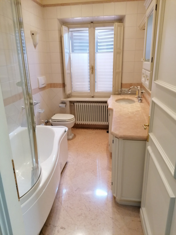 Completa la proprietà un comodo box auto di 35 mq collegato con l'ascensore che porta al piano e dotato di zona lavanderia. L'appartamento è stato completamente ristrutturato con materiali di ottima qualità e presenta: pavimenti in parquet, infissi con doppi vetri, aria condizionata canalizzata in tutte le stanze, riscaldamento autonomo, porta blindata, cucina completamente arredata con isola e elettrodomestici, vasca jacuzzi nel bagno in camera e doccia nell'altro. Gli affacci su tre lati sono tutti panoramici sul verde dei boschi circostanti, l'ottima esposizione solare conferisce una forte luminosità. La zona è molto tranquilla e a due passi da tutti i servizi principali. *Le presenti informazioni e planimetrie sono meramente indicative e non costituiscono elementi contrattuali. --- annuncio pubblicato con GESTIONALEIMMOBILIARE.it.