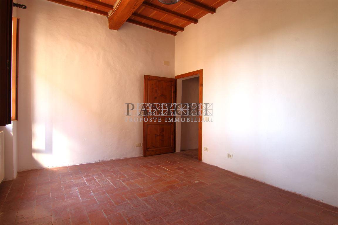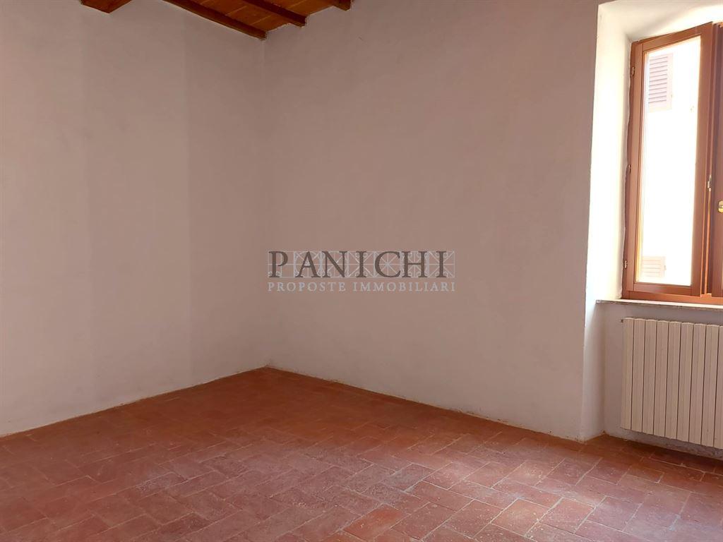 Ad Asciano lungo via del centro storico e vicino ai posteggi, si propone appartamento in vendita al primo piano di palazzo composto da 4 unità immobiliari. All'appartamento si accede da scala comune e si compone di ingresso, corridoio, cucina abitabile, bagno con doccia e aspirazione e n° 2 camere.