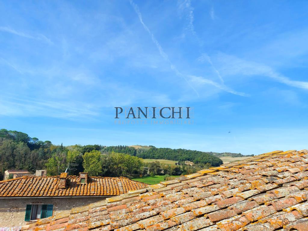 Si propone in vendita in stabile del centro storico di Asciano, proprietà al secondo ed ultimo piano composta da 2 unità immobiliari, di cui un appartamento grande con ingresso, ampia cucina abitabile, soggiorno/sala con terrazzo, 2 camere matrimoniali, ripostiglio e bagno, oltre a scala di collegamento con la terrazza a tasca sul tetto, dalla quale si accede anche al sottotetto.