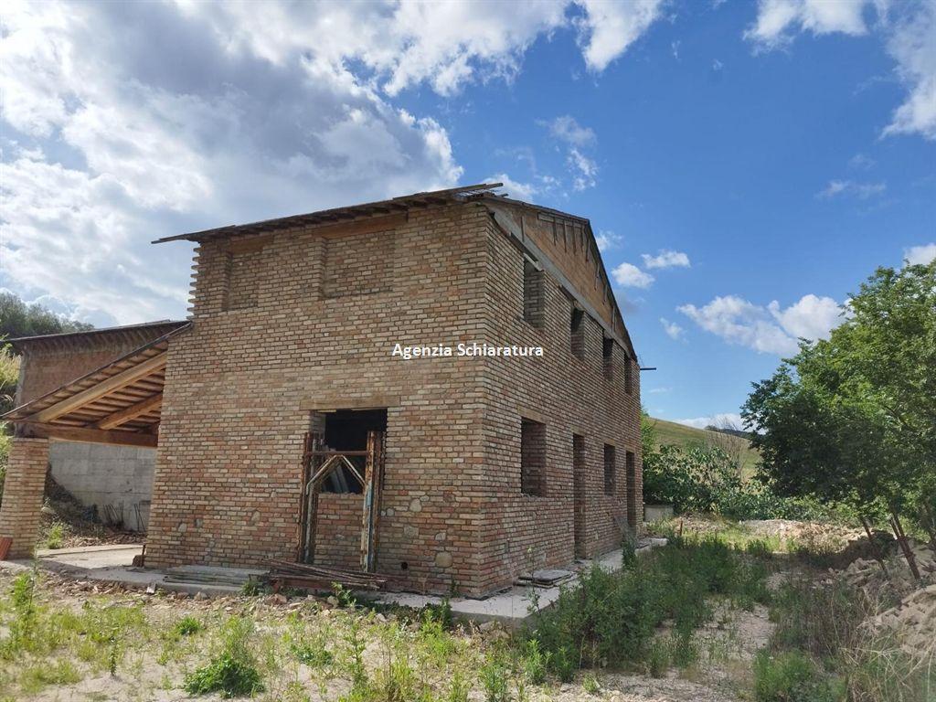 APSELLA DI MONTELABBATE IN ZONA COLLINARE VENDESI RUSTICO DI AMPIE DIMENSIONI CON BELLISSIMA VISTA SU TUTTA LA VALLATA DEL FOGLIA Vendesi casolare completamente ricostruito in muratura secondo norme sismiche, solai in legno con travi di rovere e pianelle, muratura del rivestimento esterno e finiture interne da completare.