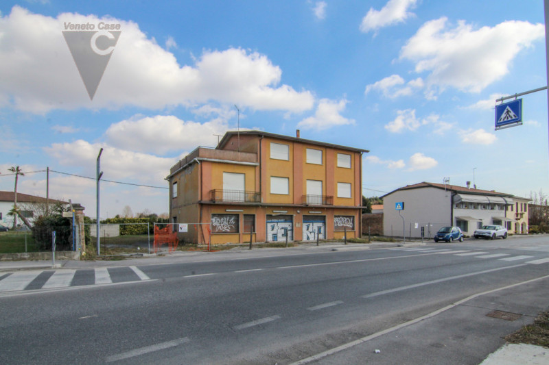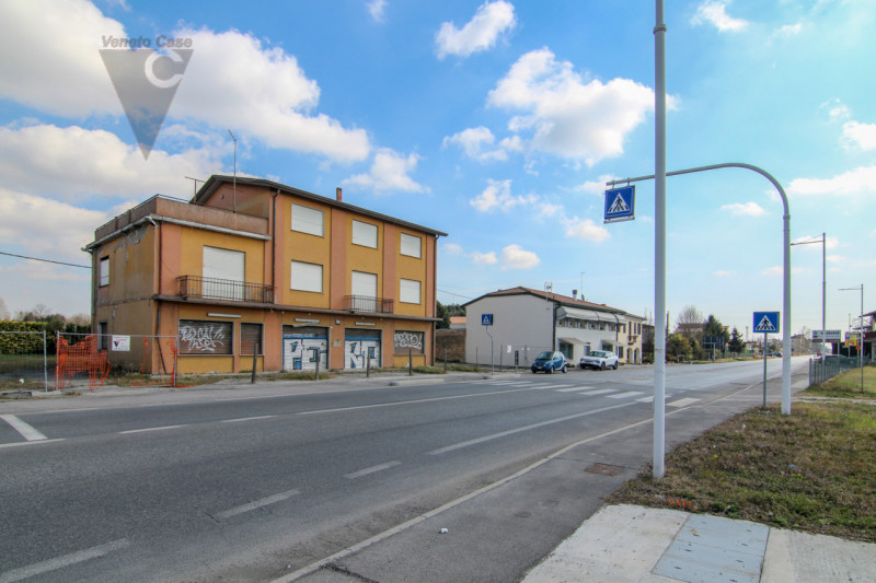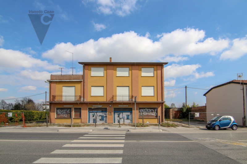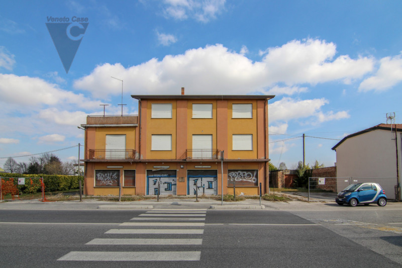 Proponiamo in vendita esclusiva condominio fronte strada Piovese nelle vicinanze della rotatoria che porta a Sant’Angelo di Piove. L’immobile da ristrutturare è posto su un lotto di 1.150mq. Al piano terra e primo locali ad uso commerciale con la possibilità di dividerli in più negozi, cantina al piano interrato.