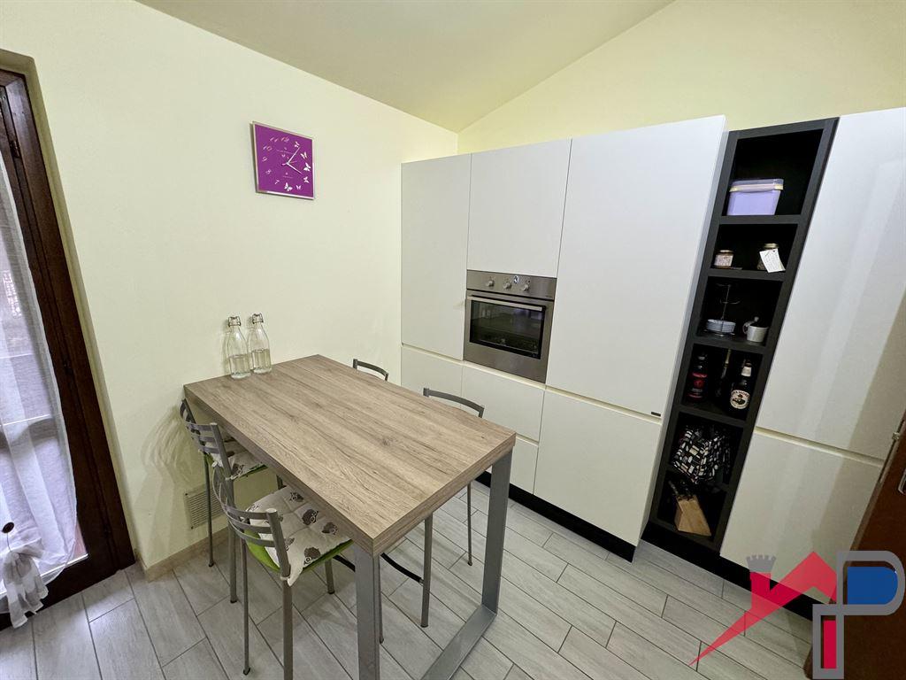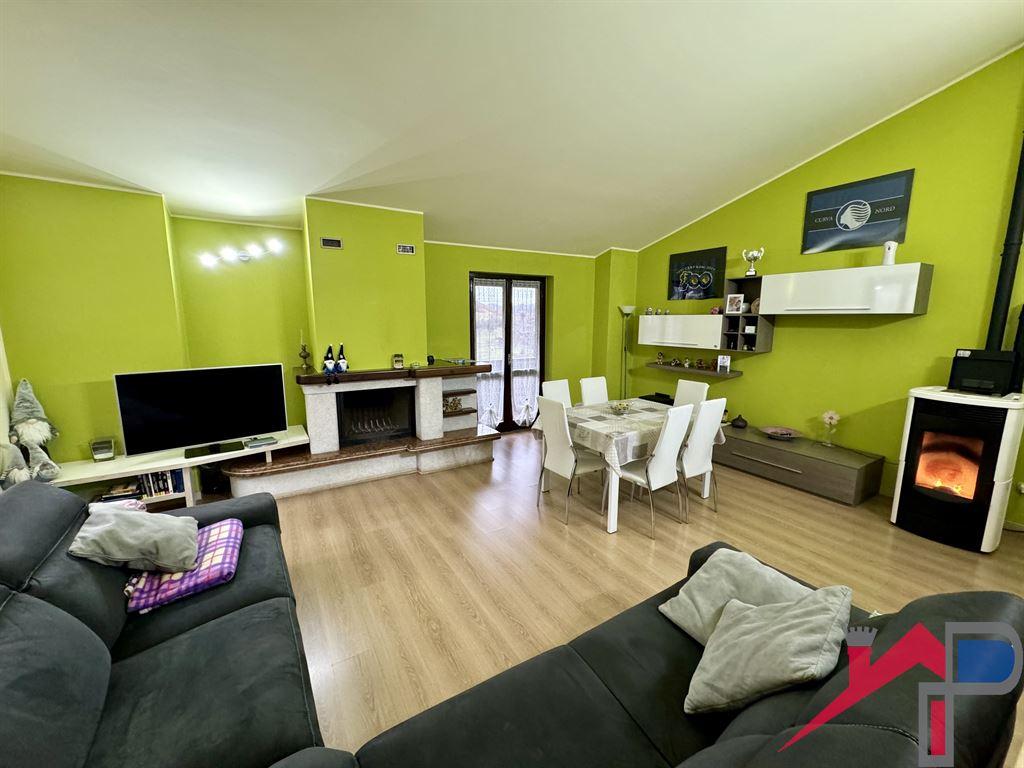 Torre Dé Busi in posizione centrale del paese, a pochi pasi dal municipio, si propone un ampio e panoramicissimo o appartamento soleggiato e molto luminoso completamente ristrutturato, composto da: ingresso, ampio soggiorno con uscita sul balcone con vista dotato di caminetto e canna fumaria per stufa a pellet, cucina abitabile con uscita su altro balcone, disimpegno, ampio ripostiglio finestrato, 2 ampie camere da letto, bagno con doccia, a completamento della proprietà una comoda cantina e un'autorimessa; l'immobile é stato completamente ristrutturato e si presenta in eccellente stato con soffitti mansardati altri (intonacati) che danno un bellissimo movimento ai locali, sono stati rifatti i pavimenti in parquet, il bagno, la cucina, le porte, e gli impianti tutti, il riscaldamento é autonomo con radiatori, le spese condominiali sono contenute.