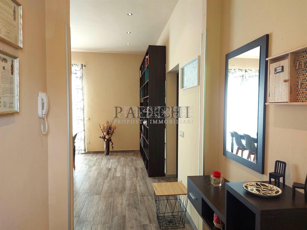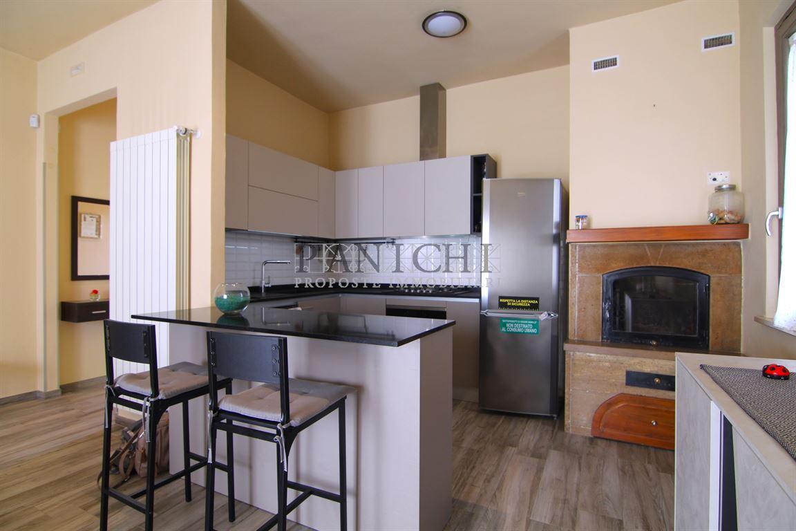 Dalla scala esterna si accede al terrazzo con ingresso all'appartamento, dove troviamo poi un ampio soggiorno pranzo open space con cucina a vista dove è inserito anche un termo camino, inoltre dal soggiorno si ha accesso diretto ad un altro bel terrazzo con fontino da dove si ha una bella veduta sul panorama circostante che si affaccia sulla campagna. Poi troviamo il disimpegno per il reparto notte, con 2 camere, di cui la matrimoniale con wc interno e altro bagno con doccia e ripostiglio. Al piano terra completa la proprietà un ampio locale di sgombero, eventualmente convertibile in garage, oltre a wc e altro ripostiglio. Nel sottoscala vi è il locale tecnico. L'appartamento è completamente nuovo come anche gli impianti e non necessita di lavori. La zona è tranquilla e residenziale, vicino alle aree verdi e agli impianti sportivi. Soluzione ideale per piccolo nucleo familiare. Si informa che l'indirizzo in annuncio non è quello esatto per motivi di privacy. Se vuoi ricevere maggiori informazioni o fissare una visita per questa prorpietà contattaci al +39 3760410559 oppure inviaci una mail a info@panichiimmobiliare.it Sul nostro sito www.panichiimmobiliare.it puoi trovare altre proposte interessanti e tutti i servizi che offre la nostra immobiliare..