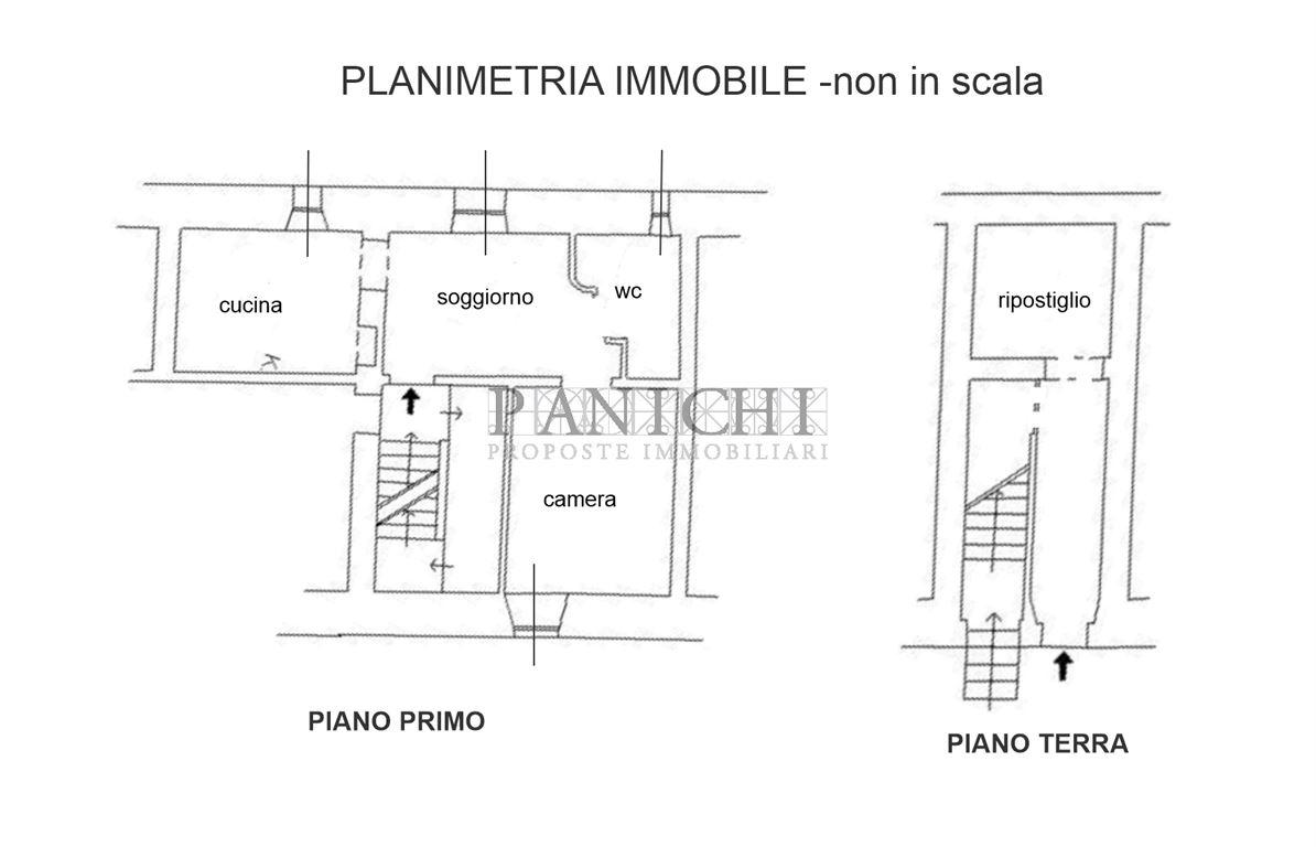 Ad Asciano in zona prossima al centro storico e vicina ai servizi oltre che alla stazione ferroviaria, si propone in vendita appartamento bilocale al piano primo con ripostiglio al piano terra. All'appartamento si accede da scala interna comune ad altra unità abitativa ed è composto da soggiorno d'ingresso, che funge anche da disimpegno, cucina pranzabile, camera e wc finestrato con doccia.