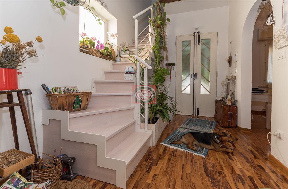La casa è stata parzialmente ristrutturata nel 2014 con impianti nuovi ed è presente l'allarme. Completa la soluzione un'area cortilizia esterna totalmente recintata alla quale si accede tramite cancello automatico, e risulta parzialmente pavimentata con la possibilità di ospitare più automobili ed in parte sapientemente coltivata a giardino con essenze di pregio; completa il tutto un pergolato ed un garage doppio in muratura di 28 mq. N.B.: le presenti informazioni non costituiscono elemento contrattuale..