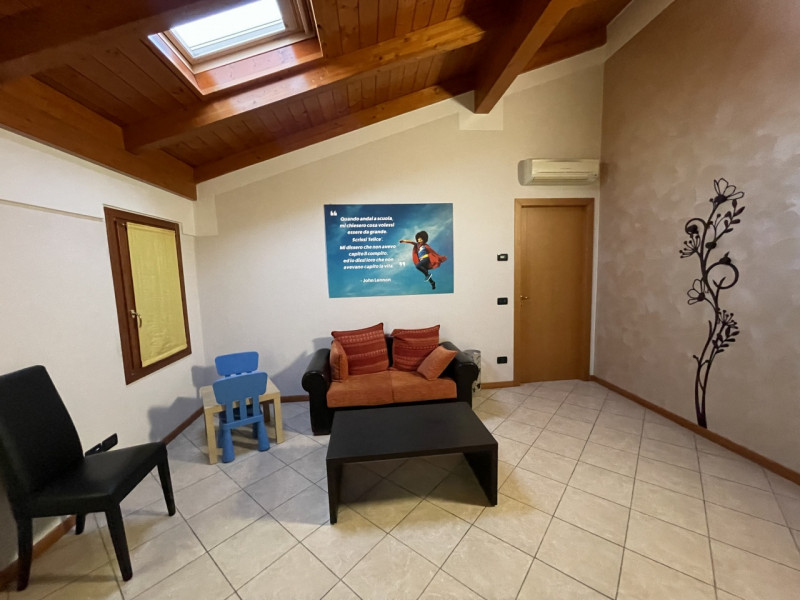 Posto al piano attico servito da ascensore con accesso per disabili, questo ambiente moderno e luminoso è reso particolarmente accogliente dalla presenza di un bellissimo travato in legno a vista che ne riscalda l'atmosfera. L'ingresso porta ad una ampia sala illuminata da tre finestre, seguono il disimpegno con ripostiglio, un bagno completo di tutti i sanitari ed infine una ulteriore stanza/studio, altrettanto luminosa. La vicinanza ad un grande parcheggio rende l'accesso agevole anche per i clienti. Il riscaldamento con caldaia autonoma è supportato dall'impianto di aria condizionata a pompa di calore, utilissima nelle mezze stagioni. Le dotazioni di cui è fornito l'immobile (videocitofono, portoncino d'ingresso blindato, infissi con vetrocamera, zanzariere) e le eleganti finiture fanno si che questo spazio rappresenti un'opportunità perfetta per professionisti che ci tengono all'immagine della propria attività. Le presenti informazioni non costituiscono elemento contrattuale e potrebbero involontariamente e in buona fede contenere errori o omissioni. --- annuncio pubblicato con GESTIONALEIMMOBILIARE.it.