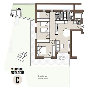 Rif. J053.1 Nuovo ed esclusivo complesso residenziale con sole 8 unità abitative, di cui 4 ampie appartamenti con 3 camere da letto ciascuno e incluso due posti auto in garage. Le abitazioni sono state costruite secondo gli elevati standard del CasaClima A e si distinguono per l'alta qualità della realizzazione.
