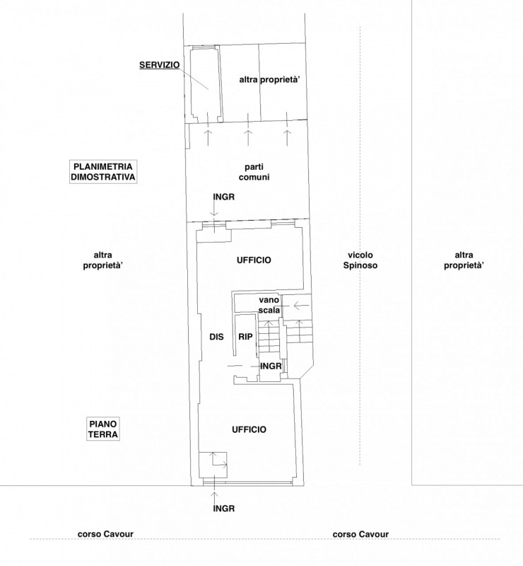 Proposta di vendita in esclusiva di Studio Immobiliare MEDIA SERVICES - Mediazioni Immobiliari Professionali. Garlasco - corso Camillo Benso di Cavour n° 175. Centro Città: IMMOBILE a DESTINAZIONE DIREZIONALE al PT (o COMMERCIALE, previo Cambio di Destinazione d'Uso) con SERVIZIO, così composto: ingresso indipendente (direttamente da corso Cavour), DUE ampi locali al piano terreno, disimpegno, ripostiglio, bagno, ingresso di servizio.