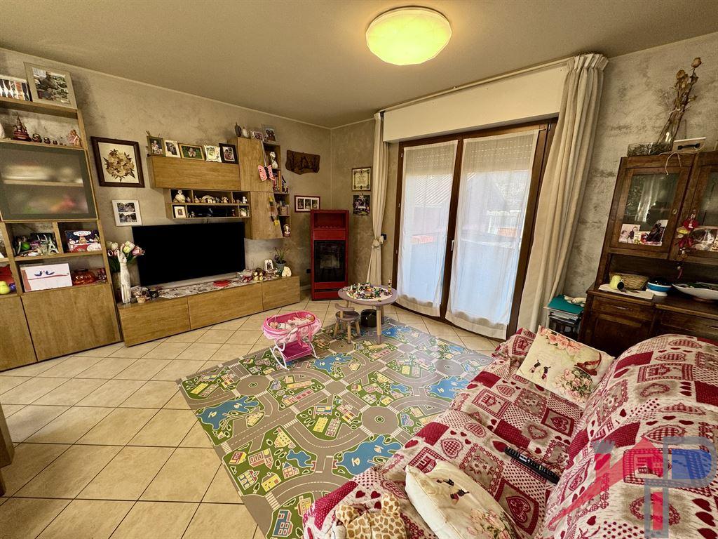 Sem: taverna con canna fumaria per caminetto o stufa, bagno, lavanderia/locale caldaia, 2 ampie autorimesse; P.T: ingresso, soggiorno, cucina abitabile, bagno, 2 balconi, e giardino privato;1°P.: 3 camere da letto, bagno, balconi. La casa molto luminosa e ben esposta al sole, é una costruzione di circa 20 anni, tenuta in eccellente stato di manutenzione con finiture di buonissimo livello, le facciate sono state rifatte di recente, la caldaia a condensazione per il riscaldamento é stata recentemente sostituita ed é stato aggiunto l'impianto solare termico per l'acqua calda sanitaria, inoltre l'immobile é dotato di impianto fotovoltaico, impianto di aspirapolvere centralizzata, impianto d'allarme, videocitofono a tutti i piani, nuova canna fumaria per stufa o caminetto a legna in soggiorno, clear delle autorimesse motorizzate ed interni di ottimo gusto. Il complesso non ha amministratore, le spese comune sono solo quelle del cancello elettrico e dell'illuminazione esterna..
