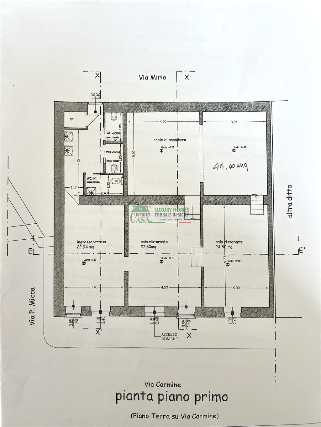 CARATTERISTICHE PRINCIPALI Superficie di 196 mq, sviluppata al piano terra e composta da: - ingresso fronte strada su zona bar/reception, perfetta per l’accoglienza della clientela; - ampie sale, luminose ed accoglienti; - cucina attrezzata - servizi igienici a norma, inclusi bagni per il pubblico e per il personale; - magazzino e dispensa, ideali per la gestione degli alimenti e delle attrezzature. Esterni: - Veranda esterna coperta, ideale per tavoli all’aperto e momenti di relax; - Possibilità di acquistare un terreno attiguo di 300 mq dove poter creare un parcheggio privato per gli ospiti del ristorante. DOTAZIONI E VANTAGGI Venduto completo di attrezzature, pronto per essere operativo sin da subito; Dotato di impianti a norma, climatizzato e domotica. Posizione strategica con elevata visibilità; Ampie metrature e ambienti versatili, adatti sia per un’attività commerciale sia per un’eventuale trasformazione in residenza. Per maggiori informazioni sull’immobile, contatta la filiale Pronto Casa Group – Agenzia 7 Marina di Ragusa al numero 0932 239865. Visita il nostro sito web www.pronto-casa.it per scoprire tutti gli annunci disponibili in città..