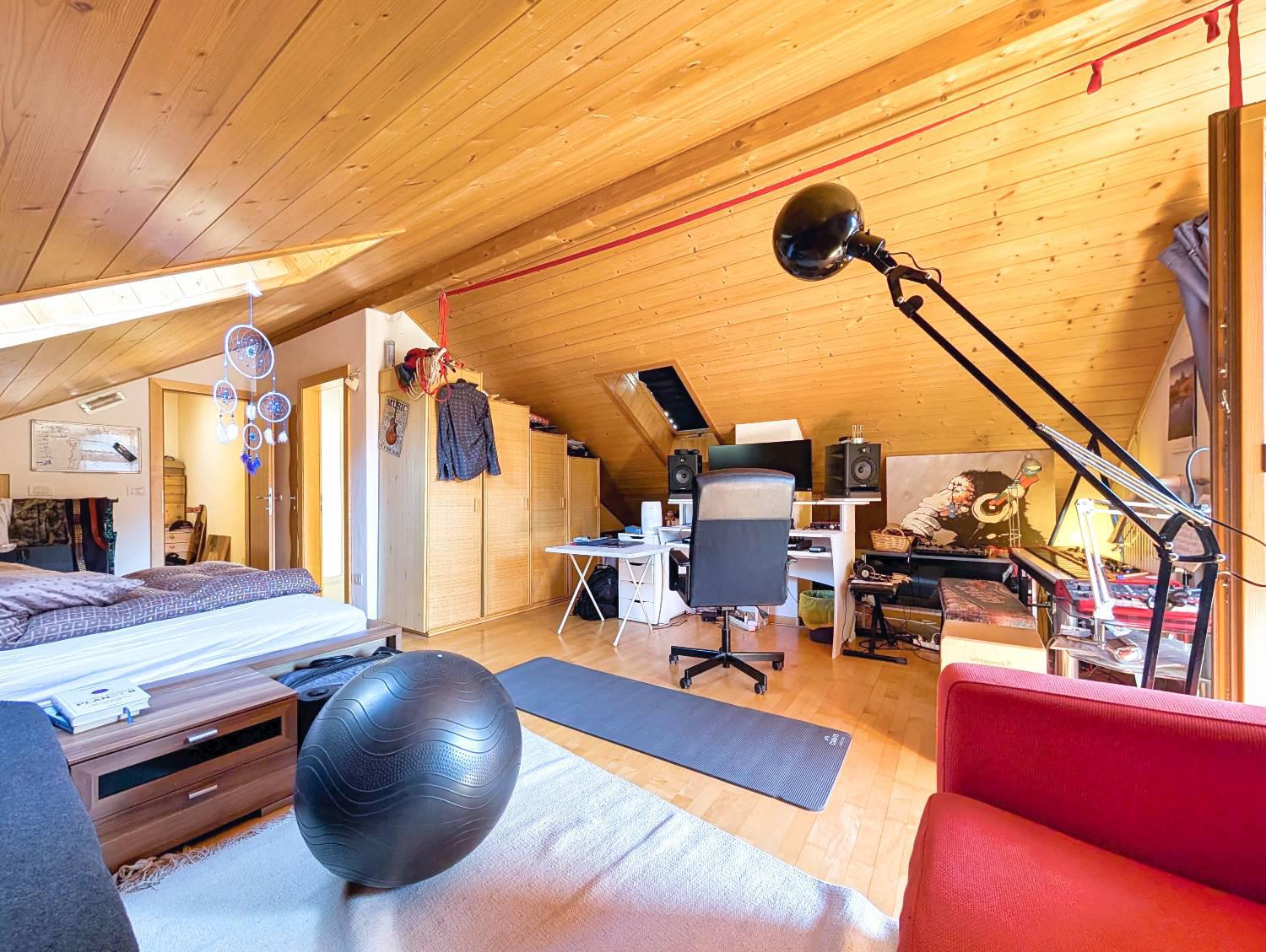 L'appartamento è suddiviso in soggiorno con angolo cottura, camera da letto, bagno e balcone; salendo le scale verso il sottotetto, si trova un ampio locale che può essere utilizzato come stanza, un ulteriore bagno-WC finestrato e un bel balcone con vista fantastica. La cantina è inclusa nel prezzo, il garage-box chiuso può essere acquistato con un sovvraprezzo di 25.000.- Euro. L'immobile non è convenzionato e attualmente ben affittato â?? adatto quindi come investimento o come seconda casa in un secondo momento (dal 2026). Sul nostro sito web è disponibile un tour virtuale dellâ??immobile!.