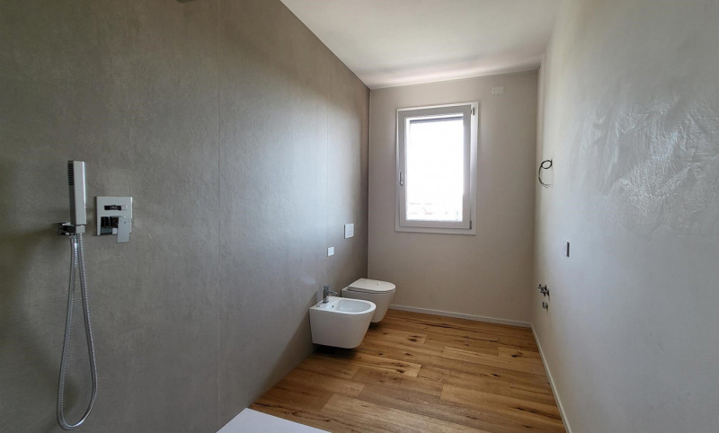 Brusegana: Nuova costruzione in zona residenziale tranquilla comoda a tutti i servizi, in classe energetica A4, contesto con ascensore, appartamento posto al piano terra con giardino esposto a sud-ovest, composto da ingresso, ripostiglio con spazio per armadi, zona giorno di 43 mq con uscita nel giardino di 220 mq, disimpegno, 3 camere a scalare e 2 bagni.