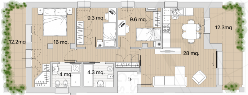 L'area servita da scuole, supermercati, biblioteca, luoghi per eventi, benessere e fitness rendono queste soluzioni l'ideale per chiunque preferisca allontanarsi dal trambusto della città senza abbandonare ciò che essa ha da offrire. La progettazione è mirata al massimo comfort abitativo, il riscaldamento a pavimento e l'impiego di fonti rinnovabili (come l'impianto fotovoltaico) ottimizzano il risparmio energetico. L'appartamento è così disposto: ingresso su soggiorno angolo cottura con accesso al terrazzo abitabile, disimpegno notte, 3 camere di cui una con accesso ad un secondo terrazzo, 2 bagni. Prezzi a partire da € 325.000 MODALITA DI PAGAMENTO PERSONALIZZABILI E SERVIZIO PERMUTE COORDINATO. EFFETTUA LA TUA PRENOTAZIONE, VIENI A TROVARCI PRESSO I NOSTRI UFFICI - APPUNTAMENTI DAL LUNEDI' AL SABATO --- annuncio pubblicato con GESTIONALEIMMOBILIARE.it.