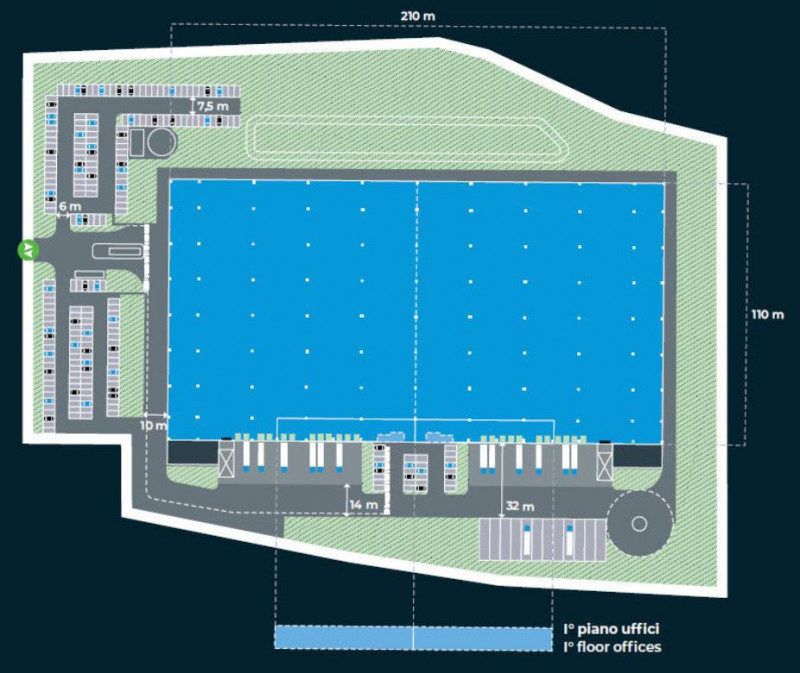 TRATTATIVA RISERVATA. Proponiamo in locazione moderno centro distributivo con uffici di mq 16.539 ca. frazionato in piu' unita'. Immobile cosi' composto da MQ 16.022 ca. di laboratorio e MQ 517 ca. di uffici. Nel complesso sono presenti 43 baie di carico, 4 portoni a raso, la portata del pavimento e' di 5 t/mq ca.