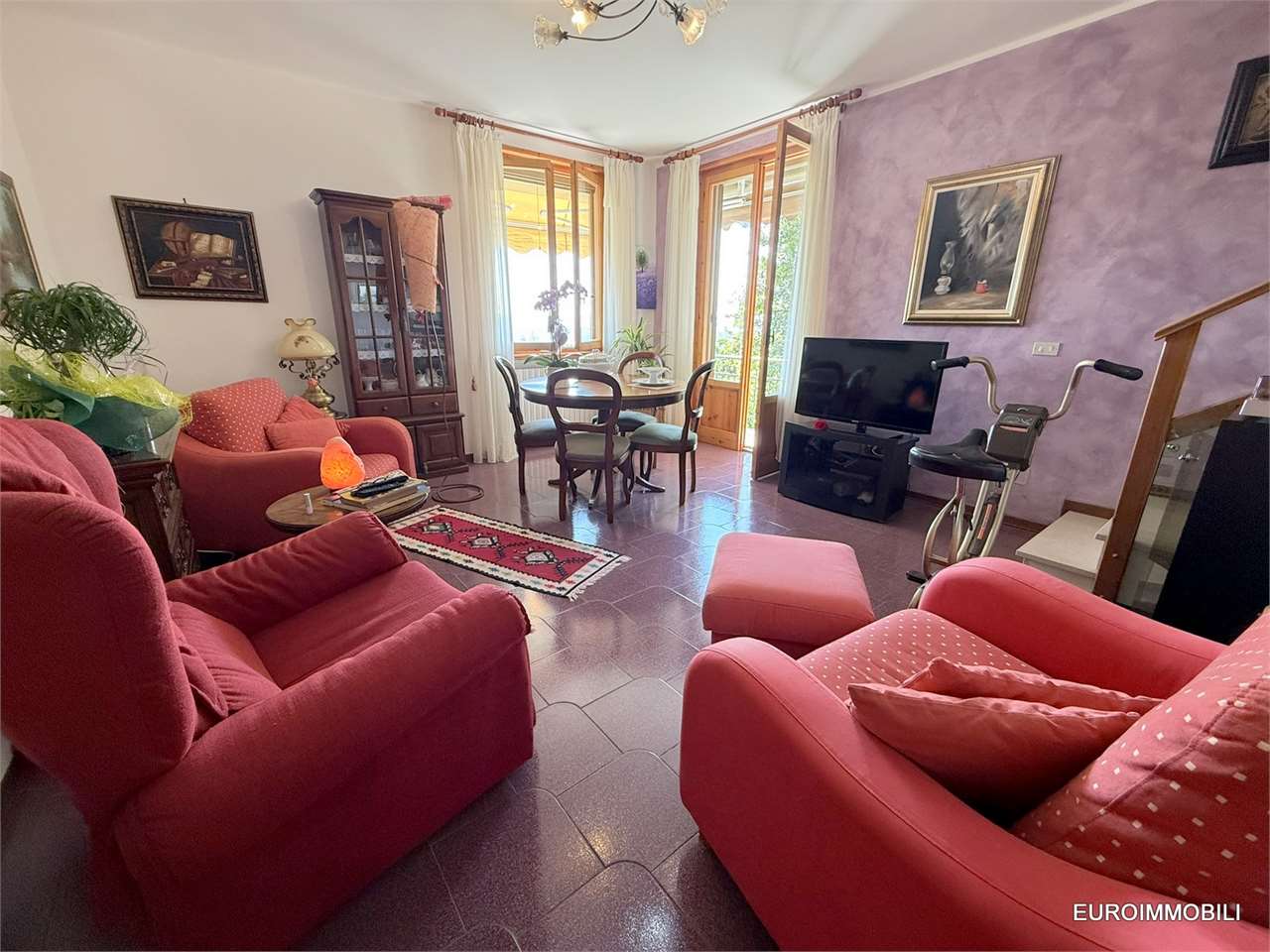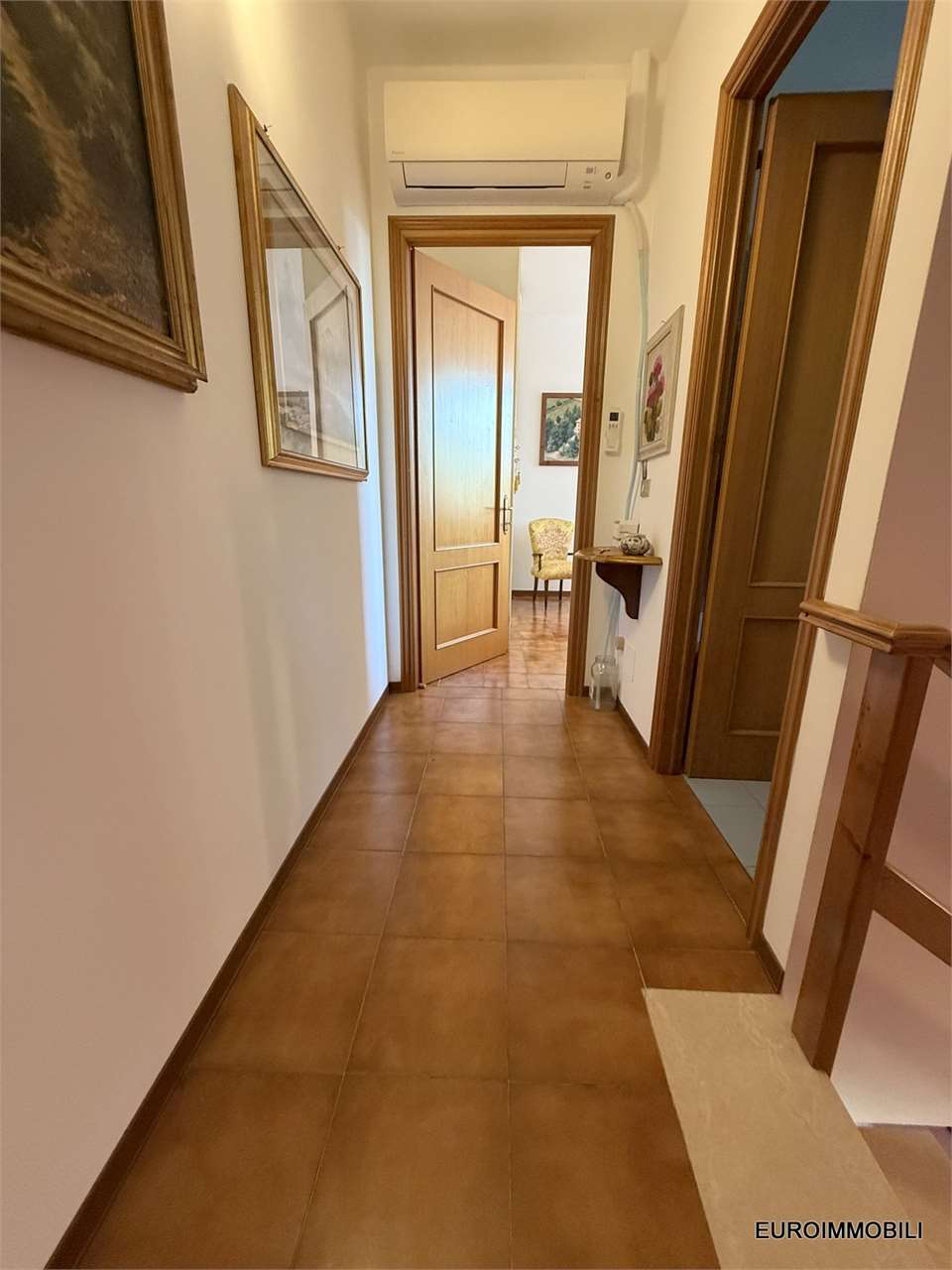La casa è composta al piano terra da ingresso, accogliente e luminoso soggiorno con un balcone con vista panoramica sulla vallata, cucina abitabile, al piano primo due camere matrimoniali di cui una con balcone con vista panoramica, disimpegno ed un bagno. Al piano seminterrato vi è una lavanderia/bagno/ locale caldaia, una cantina e un garage singolo. Completa la proprietà il cortile che è di circa 200 mq che offre la possibilità di stare all'aperto, inoltre vi è un appezzamento di terreno agricolo di 1.400 mq adiacente all'immobile. CLASSE ENERGETICA: G.