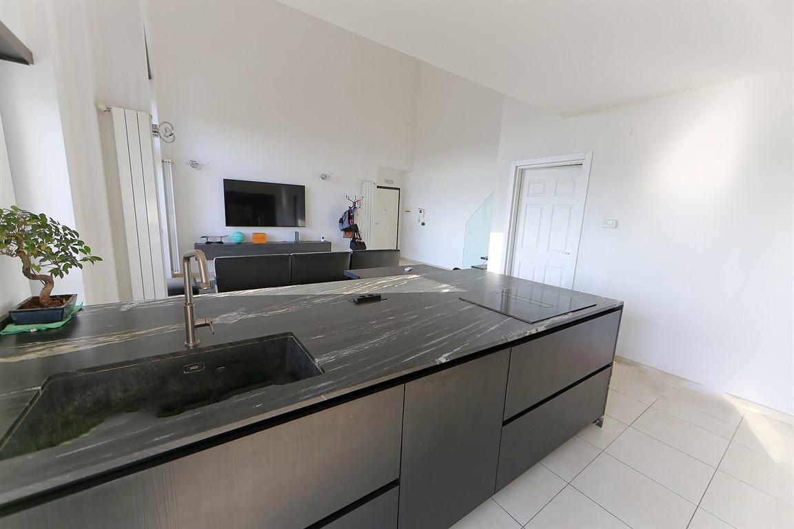 La cucina a vista, moderna e raffinata, invita alla convivialità così come l'ampia zona living. Attraverso una elegante scala, si raggiunge il piano superiore dedicato alla zona notte: una confortevole camera matrimoniale e una cabina armadio, e ripostiglio perfetta per chi desidera spazio e stile senza compromessi. Il bagno, curato nei dettagli, completa questo ambiente di charme. La proprietà include un posto auto di proprietà. L’appartamento viene venduto completo di arredi di altissima qualità, con una cucina artigianale dotata di tutti i comfort, dalla cantinetta vini con doppia cella al microonde da incasso integrato, la moderna cappa aspirante " Elica" a scomparsa e molto altro. Un’opportunità unica per vivere in un contesto esclusivo, con tutte le comodità a portata di mano. Prezzo richiesto: € 330.000 completamente arredato oltre posto auto € 10.000 Vieni a scoprire il tuo nuovo stile di vita, contattaci oggi stesso!.