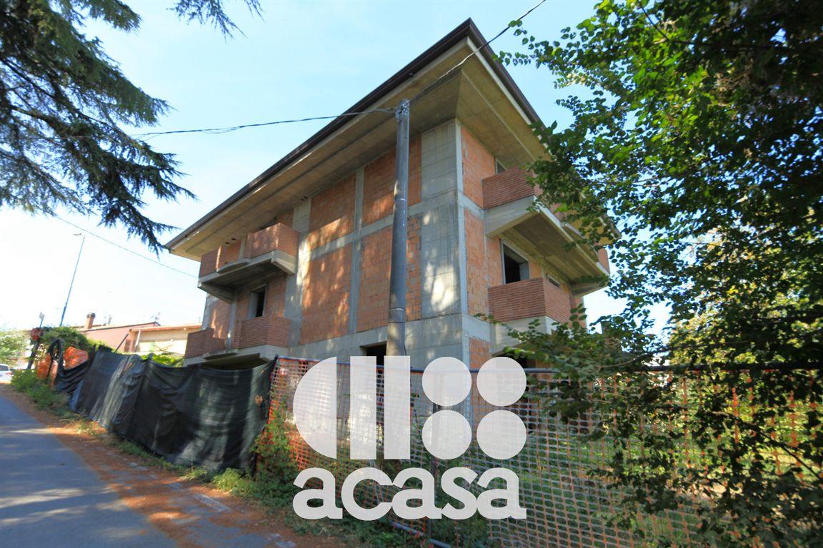 SORRIVOLI - nel caratteristico borgo, ai piedi del castello, si vende una grande casa indipendente con due appartamenti attualmente allo stato grezzo. La costruzione tutta realizzata in cemento armato con solide fondazioni su pali trivellati e tamponamenti in laterizio tipo Poroton, è organizzata su due livelli abitativi fuori terra e un piano interrato ad uso servizi.