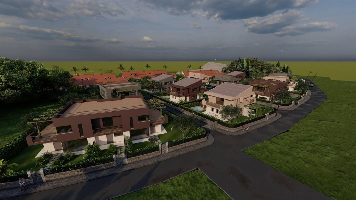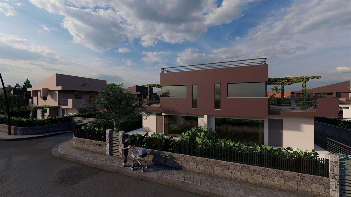 Villa singola composta di mq 135 totali su due piani, piu' terrazzo a copertura di mq 70, inoltre la villa code di un giardino privato di mq 380. Ville accorpate di mq 200 totali su tre piani di cui uno cantinato piu' terrazzo di mq 70 con giardino privato di oltre mq 200. Consegna prevista per primo semestre 2025, possibile visionare ville gia' complete..