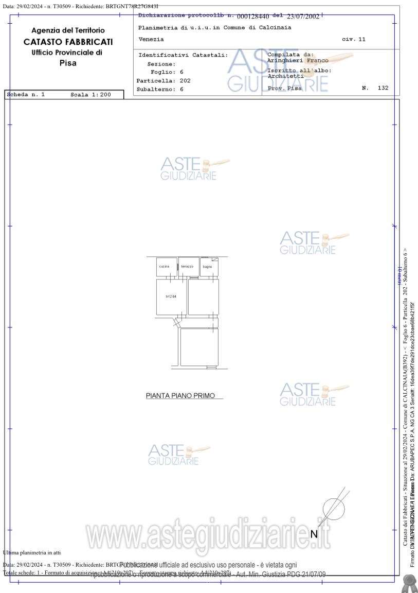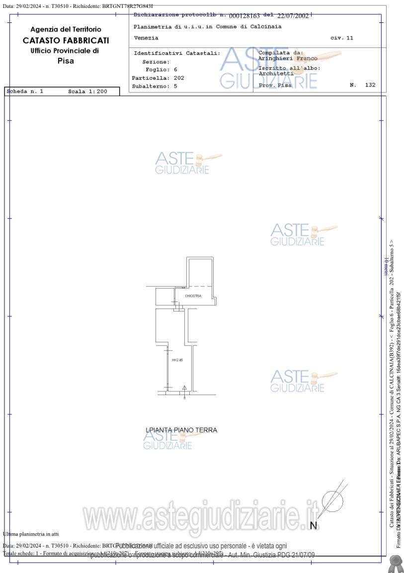 Calcinaia: proponiamo asta di appartamento sito in Via Venezia n. 9-11, piano T-1 - Calcinaia (PI), con accesso da Via Venezia sia tramite un vano scala comune sia con accesso diretto, composto al piano terreno da soggiorno, cucina/pranzo, bagno, rip.