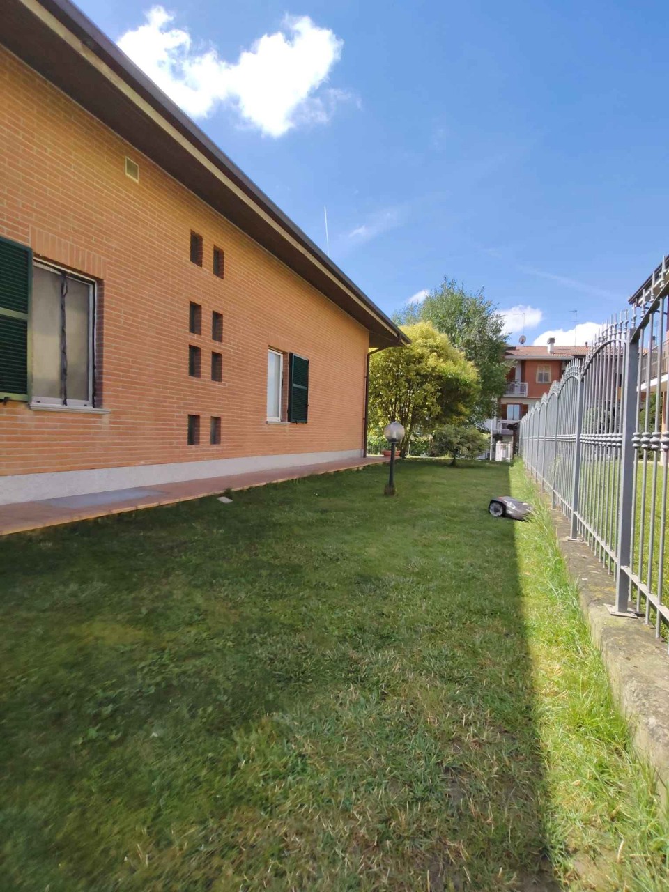 La villa si presenta su un piano unico di circa 130/140 mq dove troviamo una zona portico che da accesso ad un salone doppio, una cucina abitabile, due camere da letto, doppi servizi. Il salone doppio consente di poter trasformare il piano abitativo aumentando le 2 camere da letto attuali in tre comode camere da letto. Oltre al piano abitativo, al piano primo ( mansardato ) accediamo a due ampi locali ultimati nelle finiture oltre ad un ripostiglio/lavanderia la quale hanno il pregio di aumentare considerevolmente la metratura abitativa anche se parliamo di zone sottotetto e gioco bimbi ampiamente sfruttabili. Completano l' immobile un piano interrato costituito da un box auto doppio, una grossa cantina trasformabile in tavernetta, una seconda cantina, una lavanderia. Accessoriata di impianto d' allarme, impianto di irrigazione collegato ad un pozzo per la gestione dell' area verde di circa 800/1000 mq parzialmente edificabili. Rich. 355.000 tr
