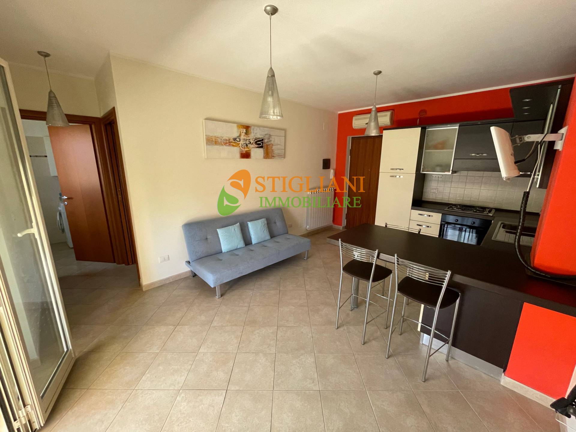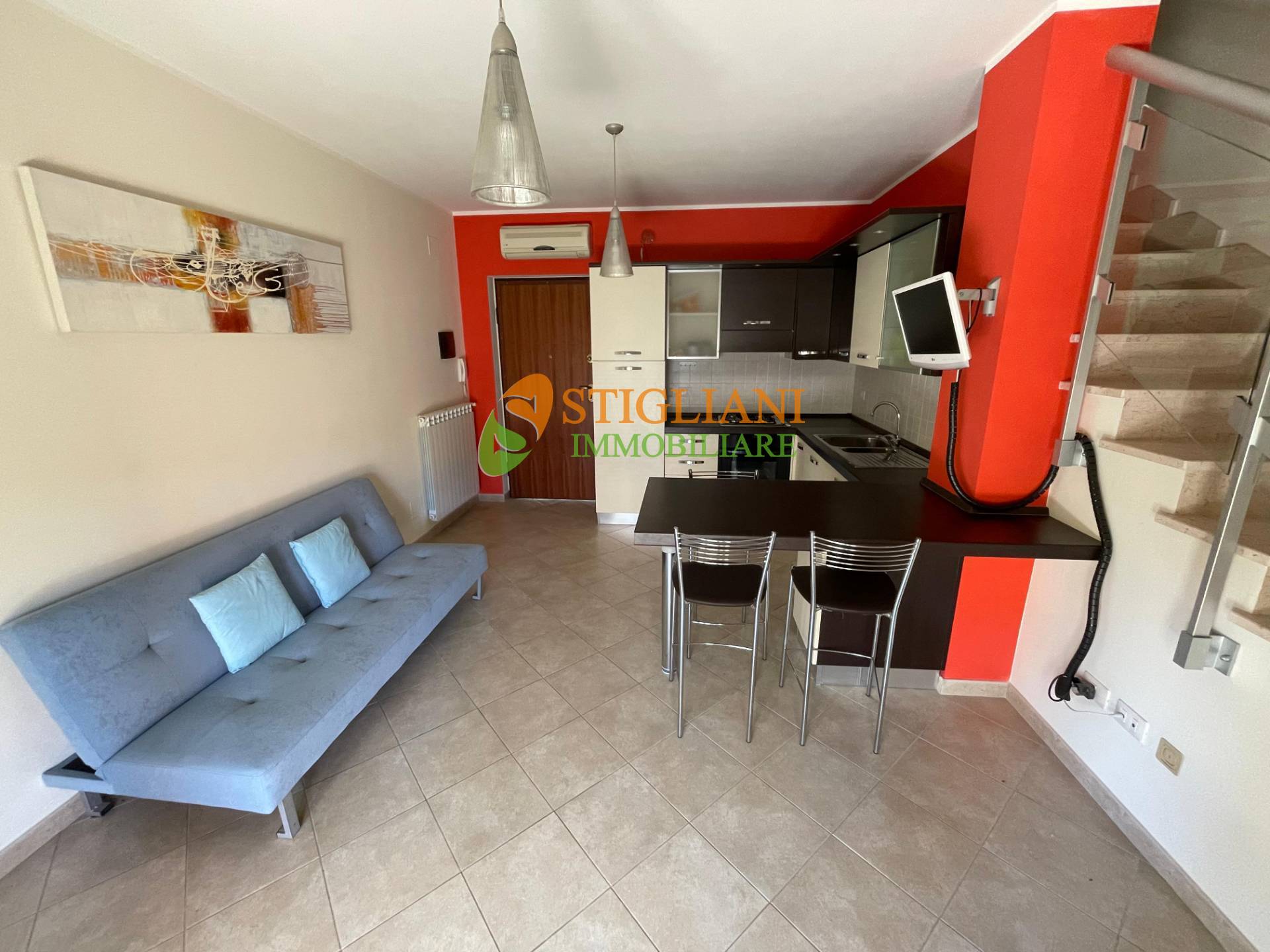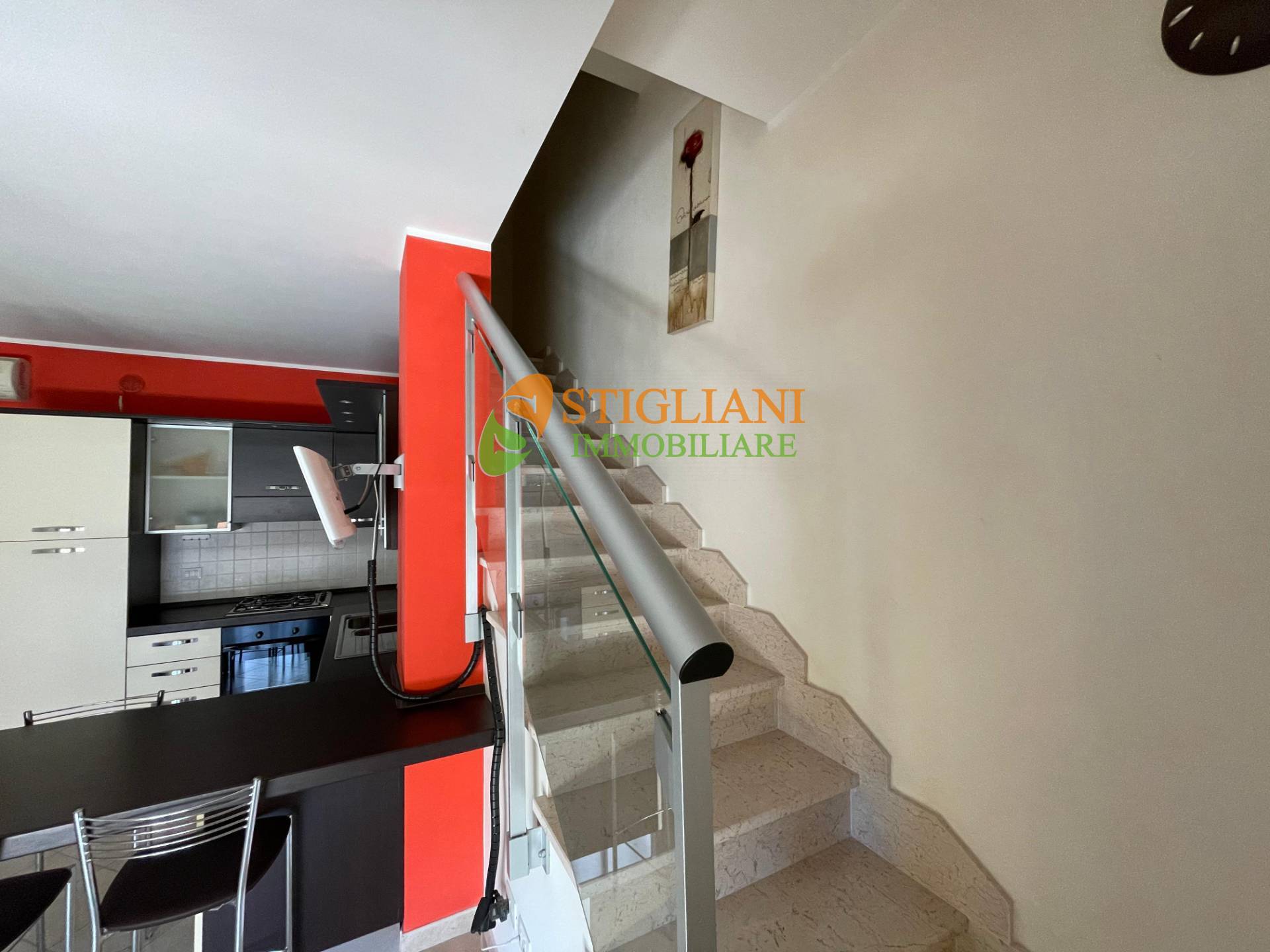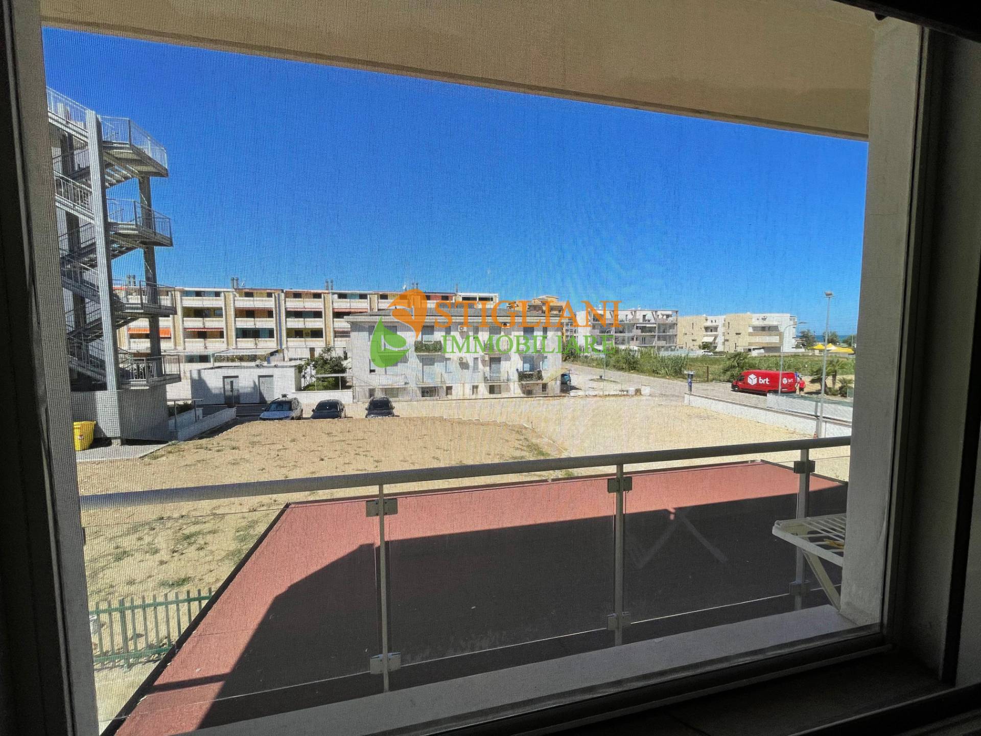 San Salvo Marina, appartamento fronte mare con ingresso indipendente, di metri quadrati 100 circa, disposto su due livelli: piano primo composto da cucina-soggiorno arredata con forniture nuove e di alta qualità, (il divano nel soggiorno è un divano letto di misure corrispondenti ad un materasso standard da una piazza e mezza), da una spaziosa camera matrimoniale, bagno e ampio terrazzo che circonda l'intero perimetro dell'immobile.