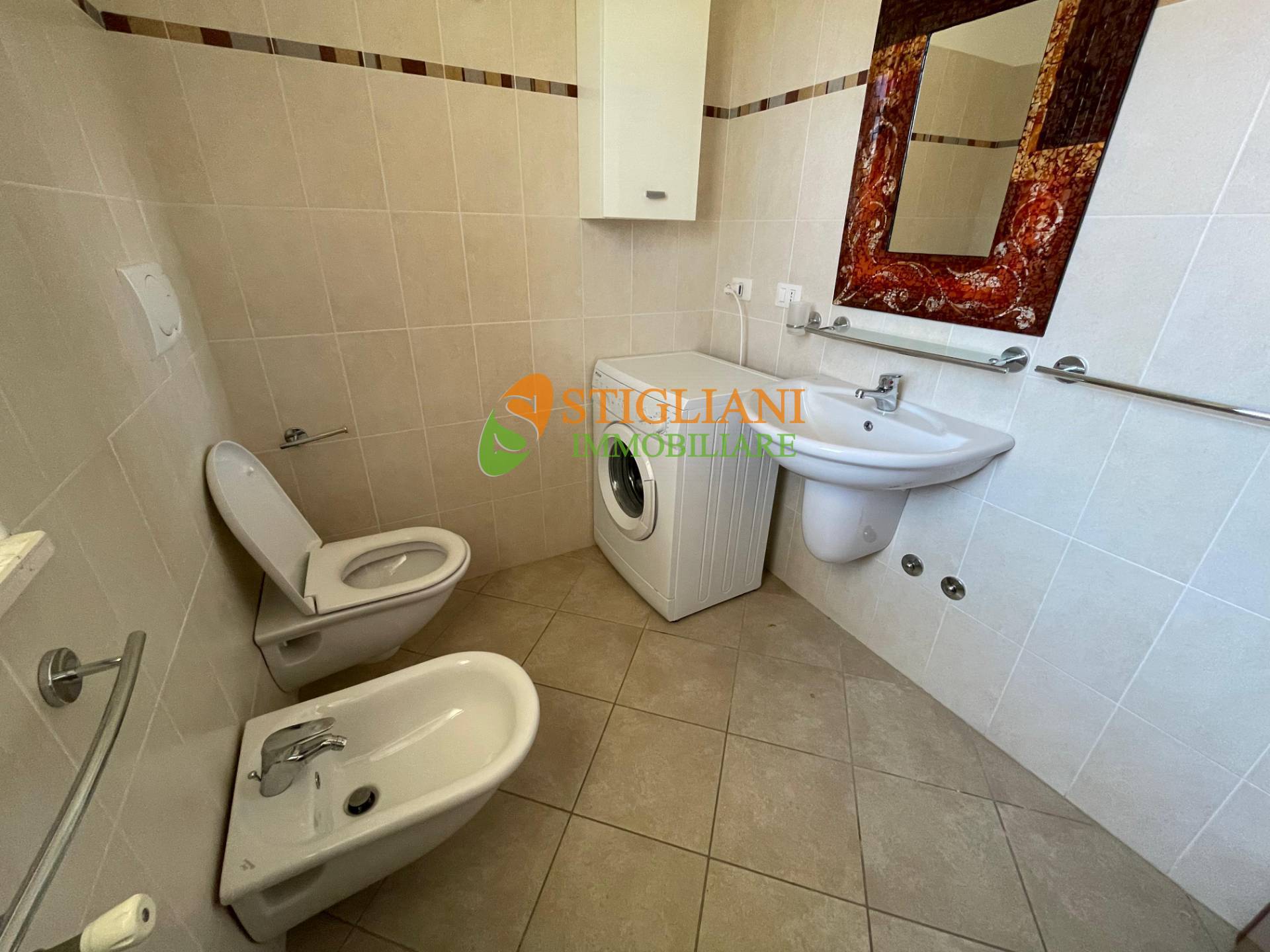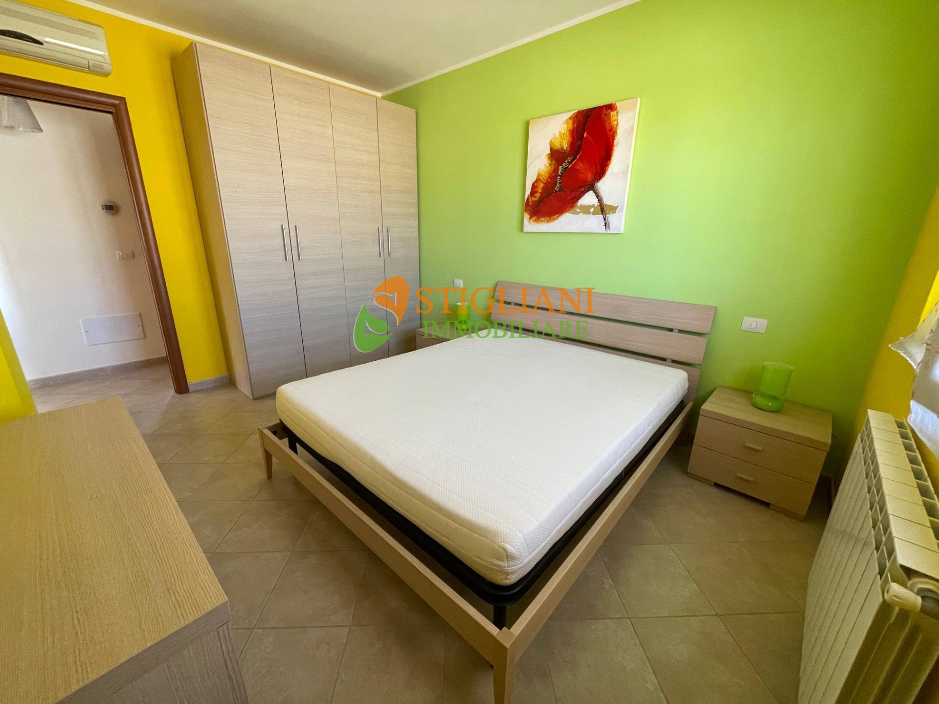 Al piano rialzato vi sono due camere da letto, una singola e una doppia (composta però da due letti singoli), ognuna di esse con il proprio balcone con vista panoramica, e un ampio bagno. Completa la proprietà il posto auto riservato come si evince nelle foto, impianto di riscaldamento autonomo con termosifoni e ognuna delle camera, nonché il soggiorno, dispongono di proprio impianto climatizzatore indipendente. Rif. 24039.