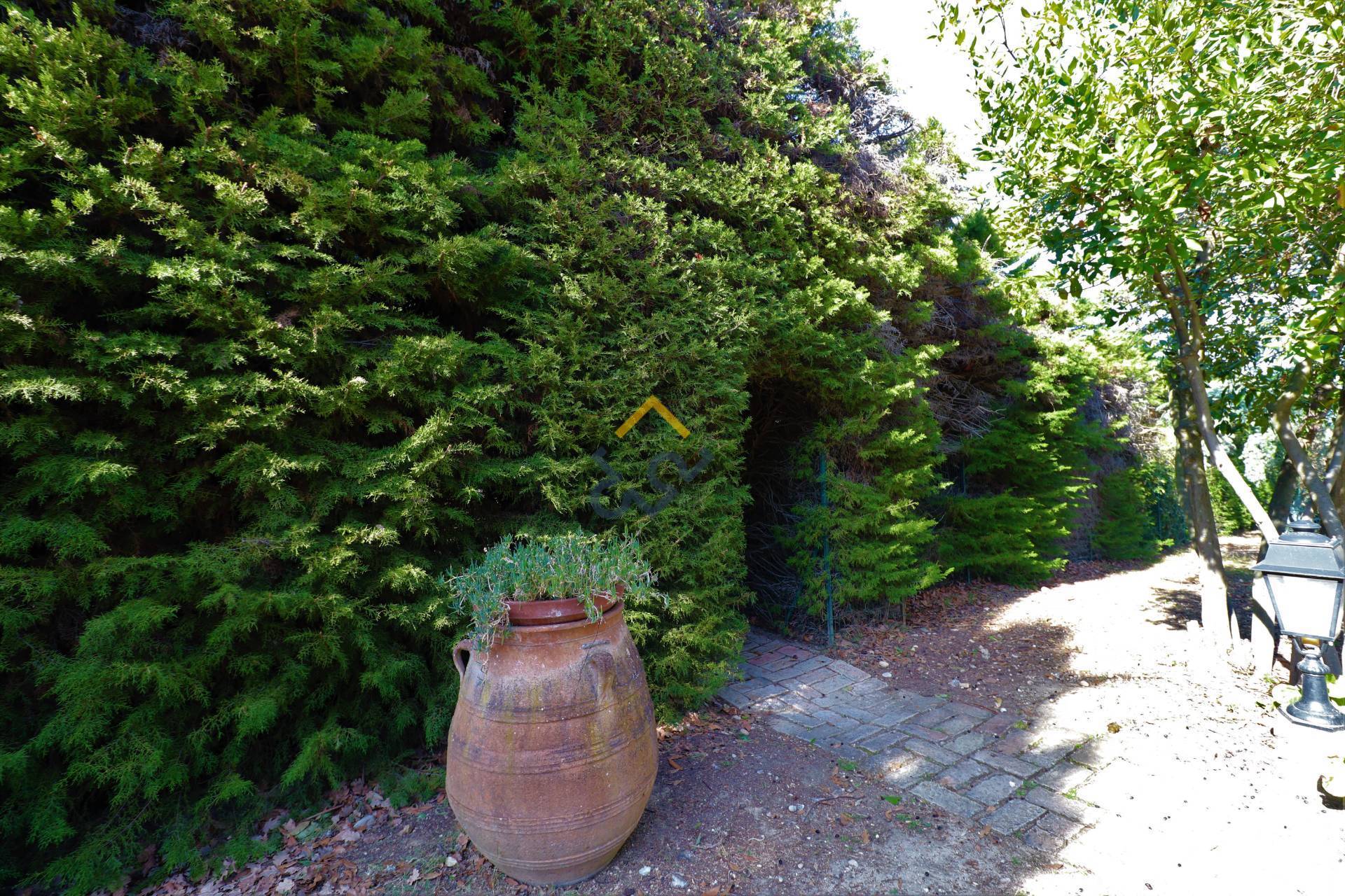 e composto da disimpegno, uno studio, tre camere da letto matrimoniali, un bagno con vasca e finestra, una terrazza coperta e accesso ad un locale soffitta. L'abitazione è completata da un porticato al piano terra e un giardino molto curato di circa 700 mq, piantumato con bellissimi alberi e piante varie. L'accesso alla proprietà è consentito sia da un cancello pedonale che lateralmente da un ampio cancello carrabile. Ottima soluzione per chi è alla ricerca di tranquillità e riservatezza ma non isolamento dalle altre abitazioni, in posizione comoda, in prossimità della strada principale, non distante dal centro abitato e dal mare. Si valuta una parziale permuta.