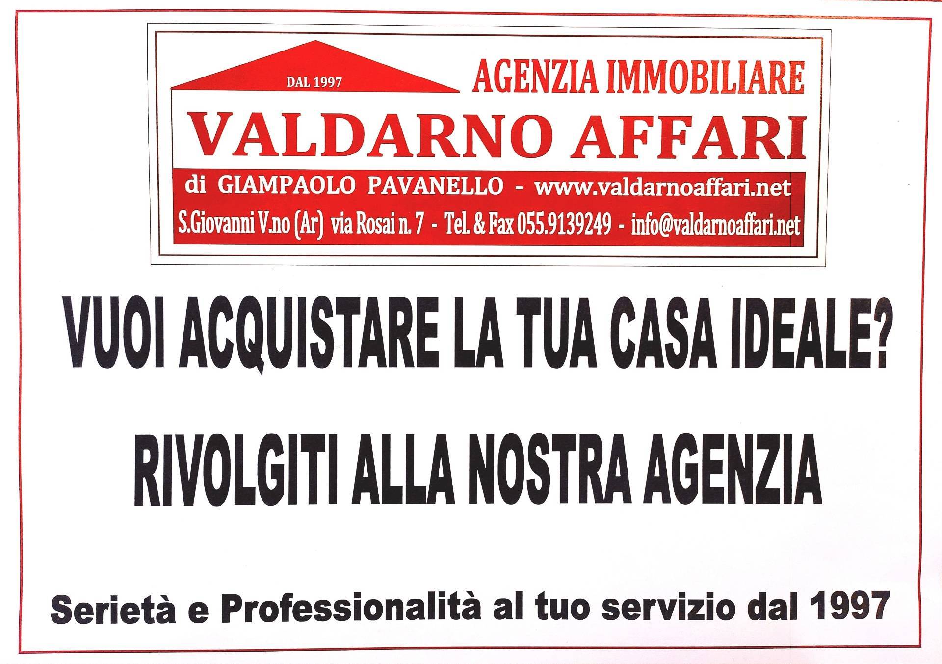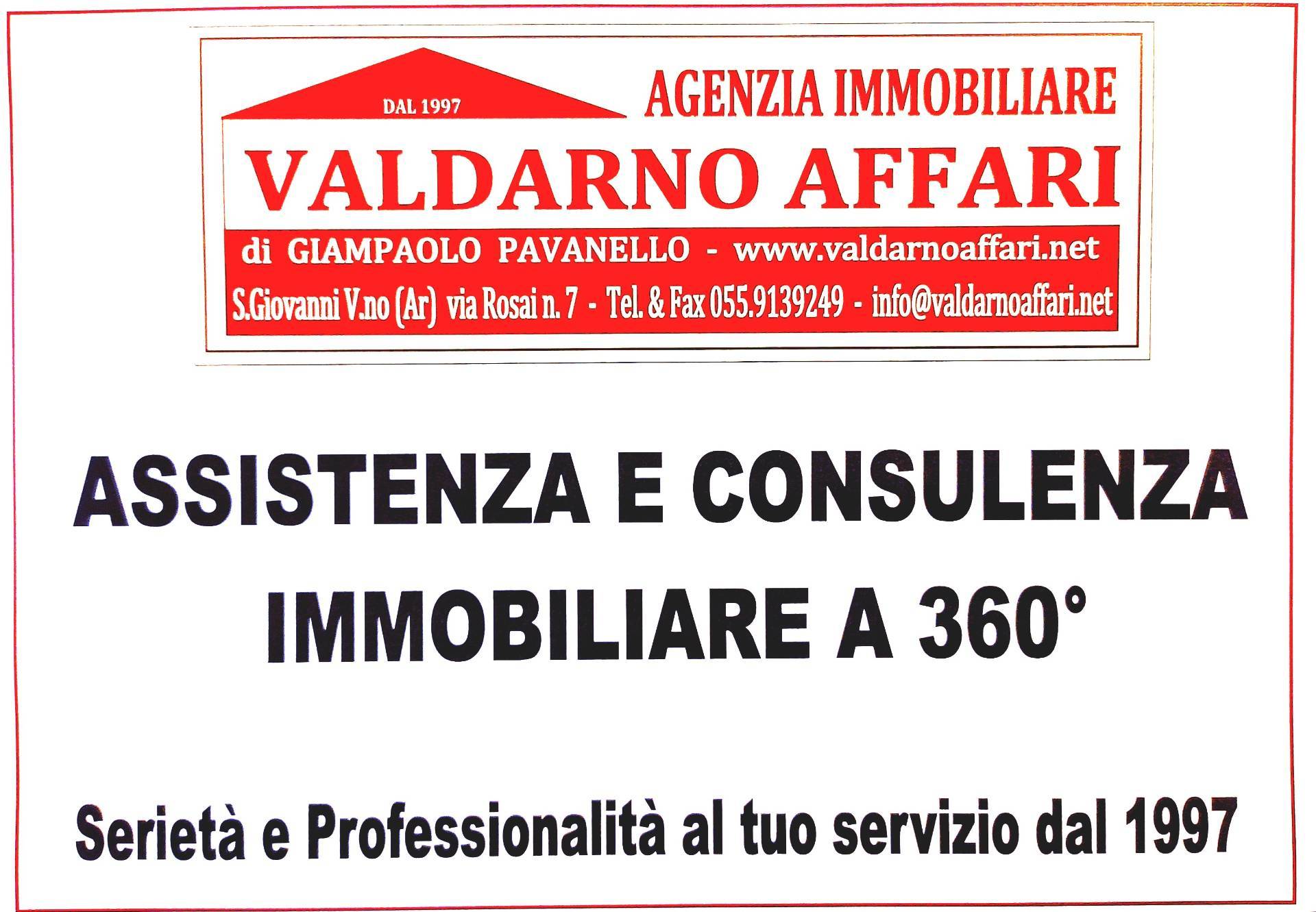 San Giovanni V.no zona Bani vendiamo luminoso appartamento posto al primo piano di una piccola palazzina, composto da soggiorno, cucina abitabile, terrazza, tre camere, doppi servizi oltre ampio garage. Condizioni abitabili. Euro 198.000 Rif 2183 L?agenzia immobiliare ?VALDARNO AFFARI? nasce nel 1997 e si è sempre distinta nel corso degli anni per la sua professionalità e affidabilità.