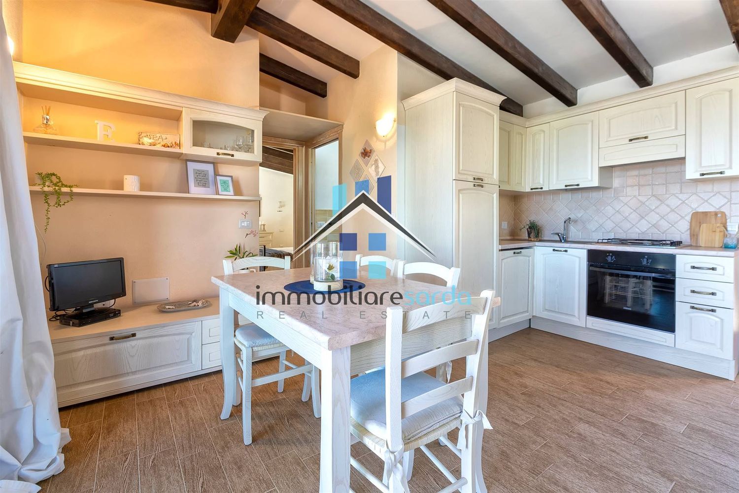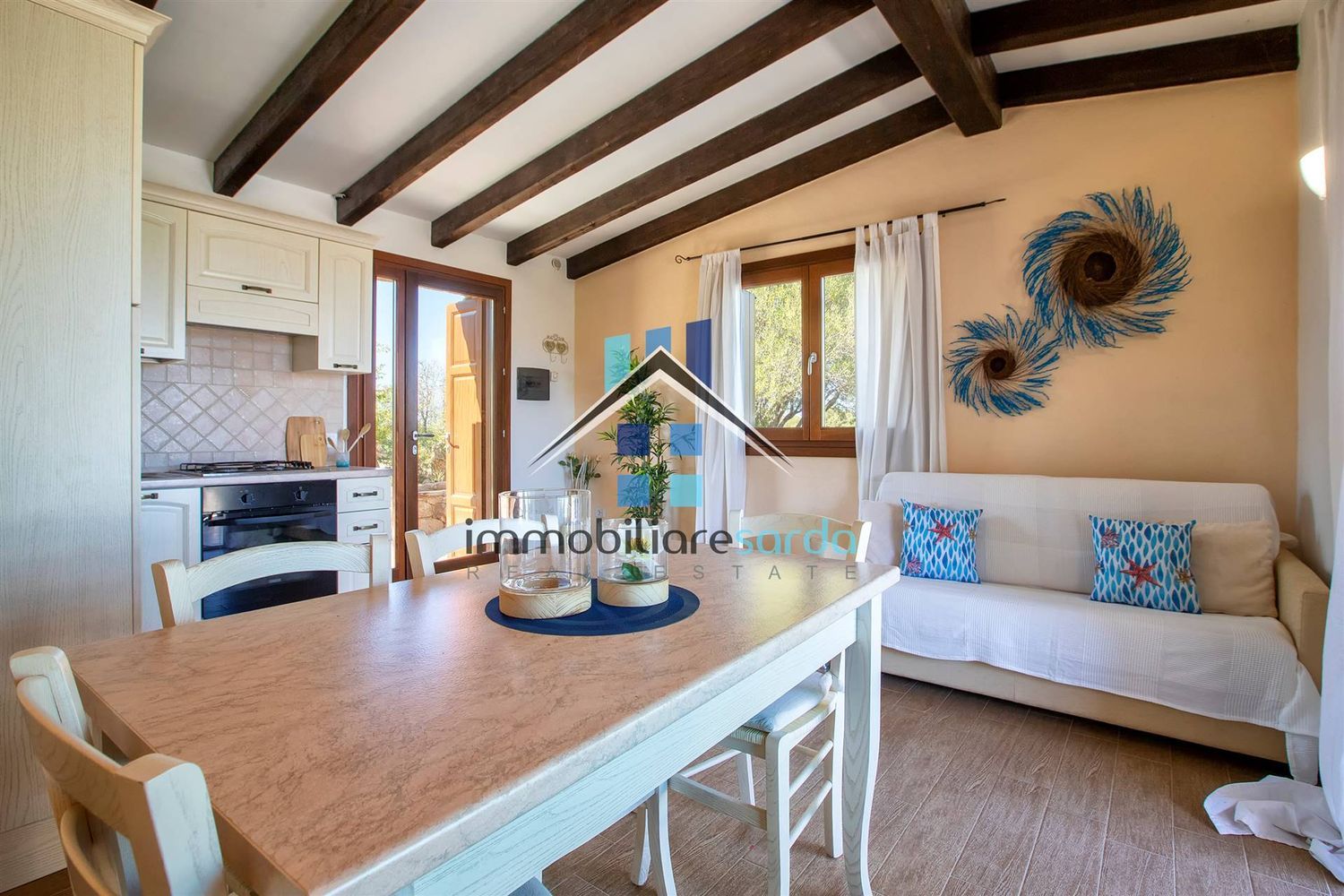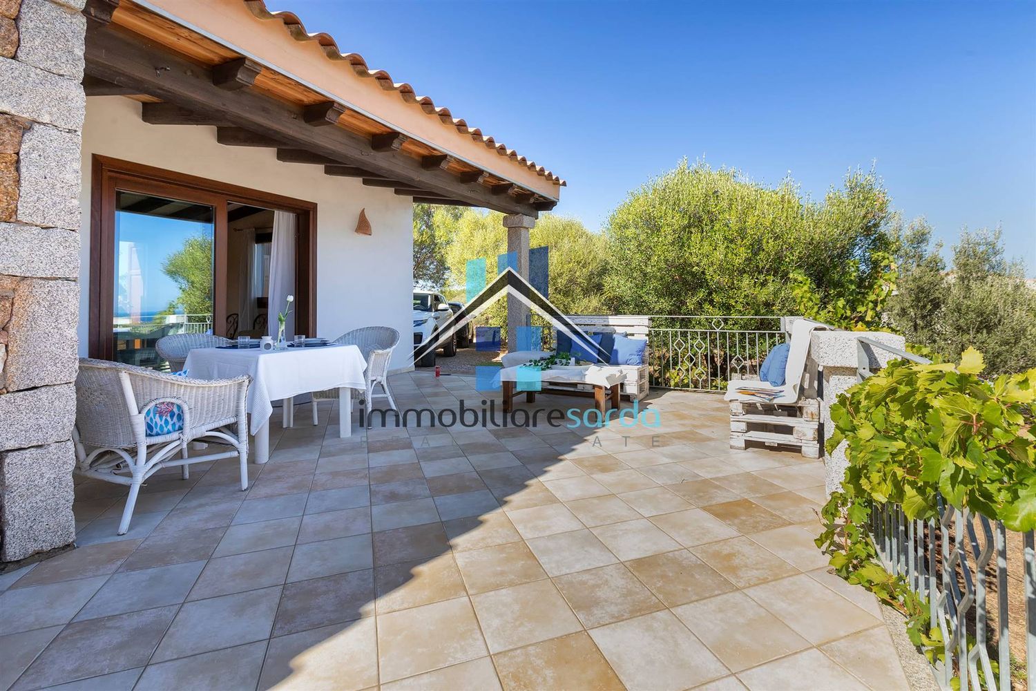 E' così composta: al piano terra rialzato troviamo una zona Soggiorno-pranzo con angolo cottura, 2 camere da letto, bagno, ampia veranda parzialmente coperta; tutti gli ambienti godono di una splendida vista mare e hanno l'uscita sulla veranda ultra panoramica; al piano seminterrato troviamo un ampio open space adibito a tsverna con bagno di servizio. all'esterno, troviamo il posto auto a pochi metri dall'ingresso principale della casa, una doccia esterna e un barbecue entrambi realizzati in muratura. Nel piano terra la villa è dotata di riscaldamento a pavimento, possono essere posizionati gli split per l'aria condizionata o riscaldamento su richiesta; Grande cura è stata riservata alla qualità costruttiva con l'impiego di materiali compatibili con la bioedilizia così come nello stile architettonico che trae ispirazione dagli antichi stazzi galluresi e si caratterizza negli esterni dai rivestimenti in pietra a vista e dal classico tetto a doppia falda, gli interni sono invece impreziositi dal doppio tetto realizzato in legno. Su richiesta, è possibile realizzazione una piscina e inserire i pannelli fotovoltaici. Le spiagge si raggiungono in 10 minuti cosi come tutti i servizi. Olbia città, il porto e l'aeroporto distano appena 8 km..