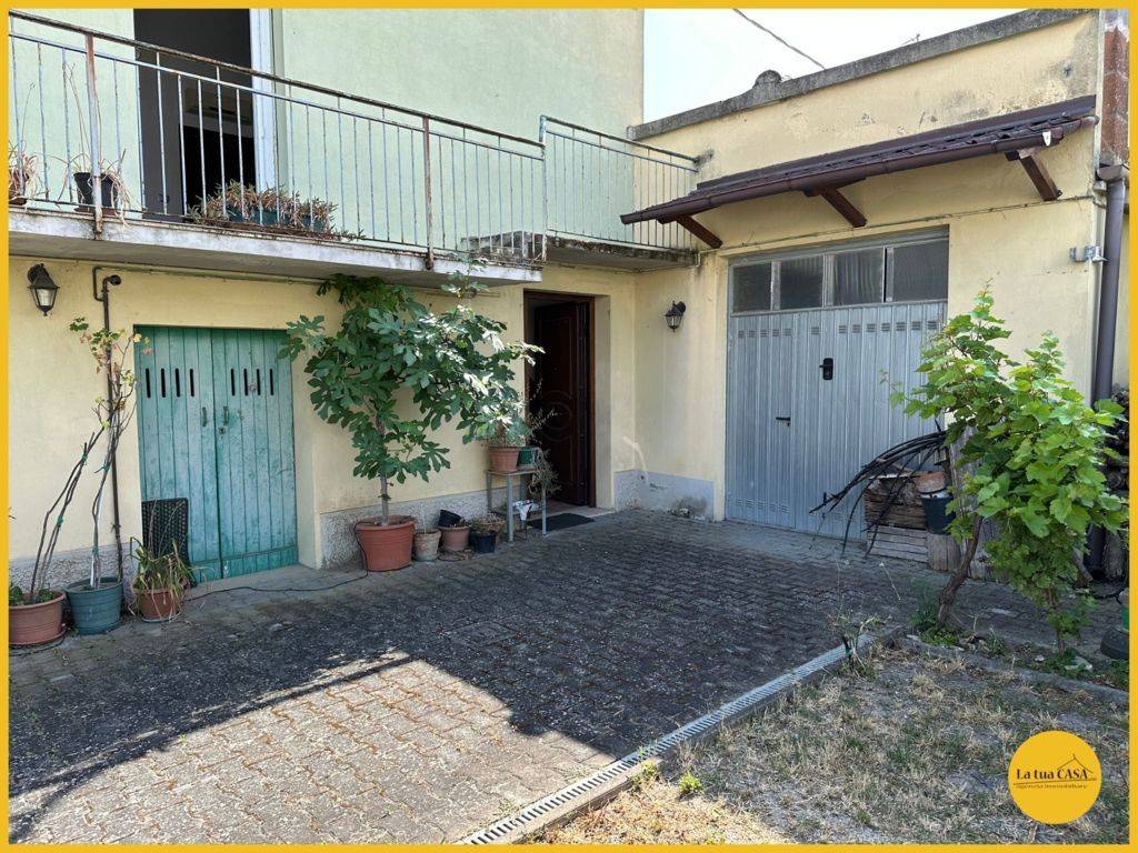 Porzione di bifamigliare disposta su 3 livelli composta da: PT: ingresso indipendente P1: disimpegno, soggiorno con balcone, cucina abitabile e bagno con box doccia P2: disimpegno, due camere da letto matrimoniali e bagno con box doccia. Inoltre al piano terra annessi giardino esclusivo di proprietà, ampio garage con cantina, lavanderia con bagno e posto auto.