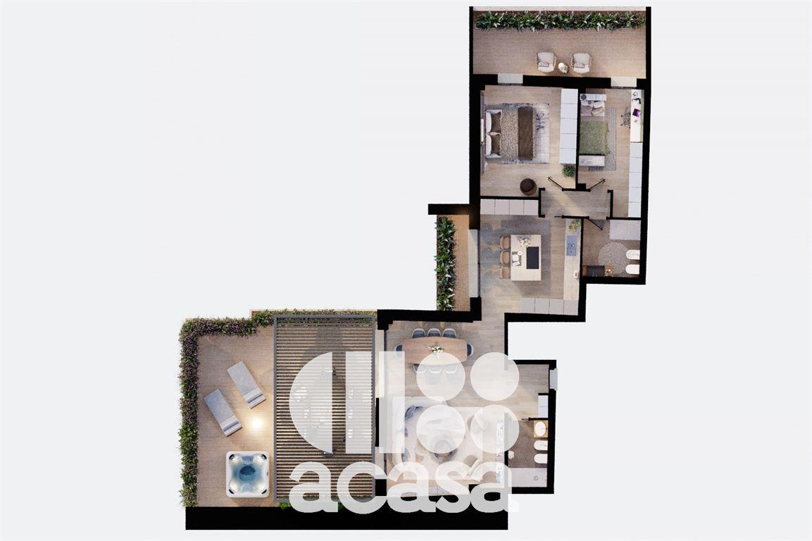 Le caratteristiche principali di questo nuovo complesso immobiliare sono: design innovativo, finiture di qualità, ampi spazi esterni ed una posizione strategica. 12 unità disponili con diverse caratteristiche, tutte con posto auto e cantina. APPARTMENTO A/9: Appartamento - 5 locali - 168,38 mq Ampio appartamento al primo piano servito da ascensore. Ingresso su ampio soggiorno affacciato su terrazza di oltre 50 mq, cucina abitabile, due camere da letto, doppi servizi ed ulteriore terrazza di circa 20 mq a servizio della zona notte. Cantina e possibilità di posto auto di proprietà. Per informazioni ACASA_Cesenatico, Viale Roma 24. tel. 0547-1952930 Le presenti informazioni non costituiscono elemento contrattuale.