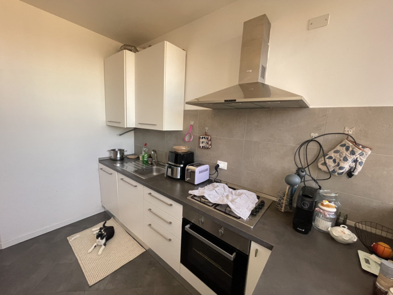 Superato l'ingresso, la zona giorno si apre su un luminoso soggiorno-pranzo con accanto la cucina riparata e funzionale; un balcone comodo alla zona giorno rappresenta un ottimo sfogo esterno ampiamente utilizzabile. Attraverso il disimpegno si accede alla zona notte che ospita una camera da letto matrimoniale, una cameretta singola o studio ed il bagno con box-doccia. L'alloggio è accessoriato di una capiente autorimessa singola. La presenza di tutti gli arredi, moderni e in buono stato, consente di risparmiare ulteriori costi iniziali e di poter usufruire sin da subito della propria casa. L'appartamento è stato ultimato nel 2019, è dotato di cappotto isolante, gli infissi sono con vetrocamera, provvisti di avvolgibili con apertura elettrica e zanzariere, a scorrimento laterale nelle porte a finestra, il portoncino d'ingresso è blindato con le stesse finiture delle porte interne, il riscaldamento è autonomo con caldaia a condensazione ed elementi riscaldanti in acciaio, termo-arredo nel bagno, predisposizione clima, pavimentazione uniforme e moderna di grande formato. Se siete interessati a saperne di più su questo immobile non esitate a contattarci. Le presenti informazioni non costituiscono elemento contrattuale e potrebbero involontariamente e in buona fede contenere errori o omissioni. --- annuncio pubblicato con GESTIONALEIMMOBILIARE.it.