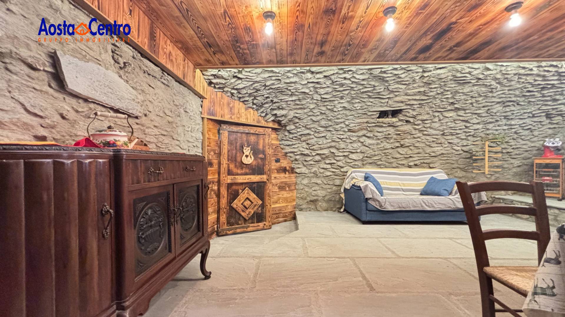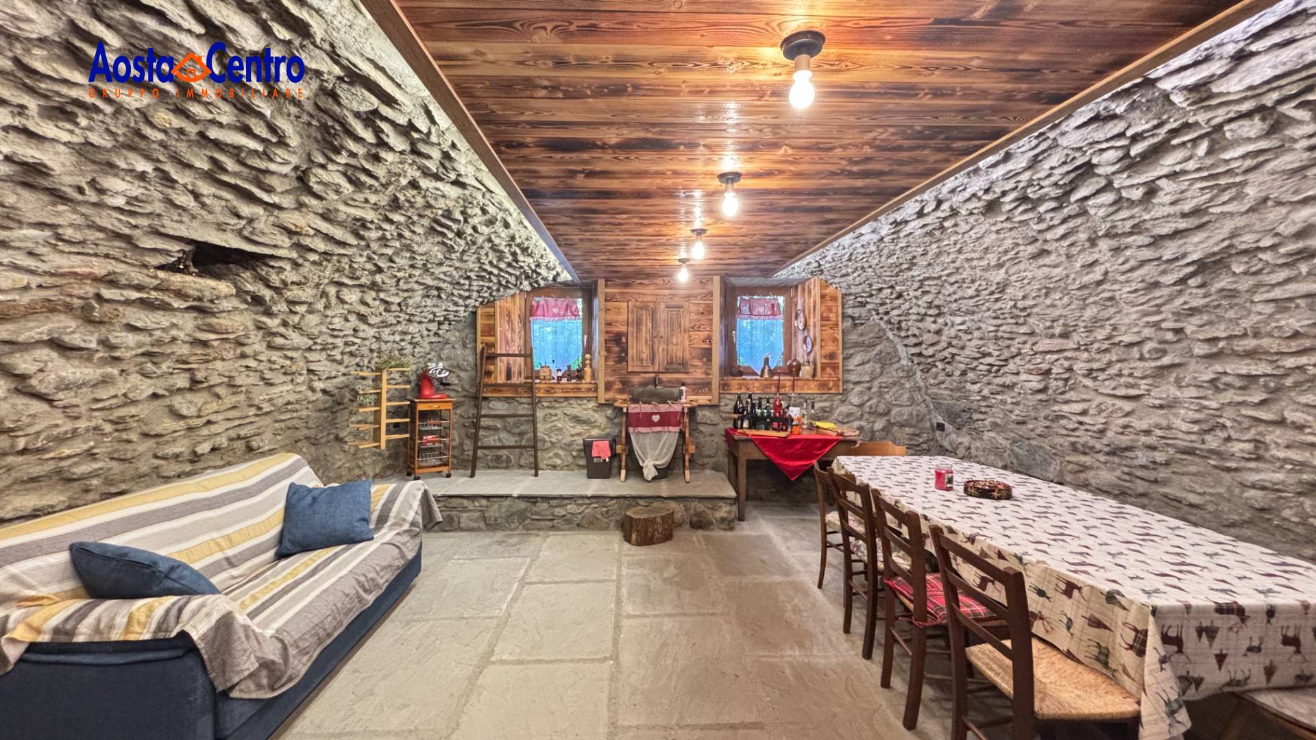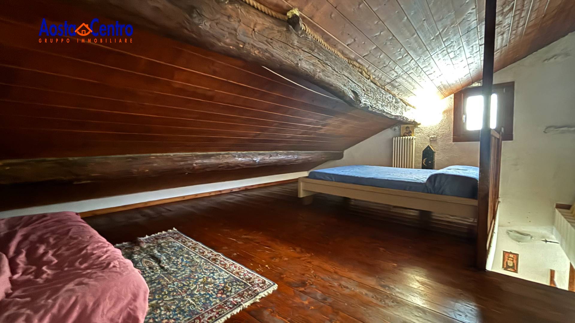 L'appartamento al piano primo si compone di ingresso su cucina abitabile, un disimpegno porta nel soggiorno e ad un servizio finestrato con vasca. Dalla scala interna si accede al piano superiore composto da una camera con balcone, sempre dalla scala interna possiamo salire in un sottotetto di circa ... mq. La proprietà si completa di una taverna a volta ristrutturata recentemente, di una parte della corte della esterna davanti all'ingresso dell'abitazione e di un piccolo deposito. L'alloggio è riscaldato a metano con caldaia nuova a metano. Privo di spese condominiali. Le descrizioni e i dati degli immobili sono indicativi e non costituiscono vincolo contrattuale. Per ulteriori informazioni o visite presso l'immobile potete contattarci ai numeri: Fisso: 0165/548899 Mobile: 347/2468088 Whatsapp: 339/4993196.