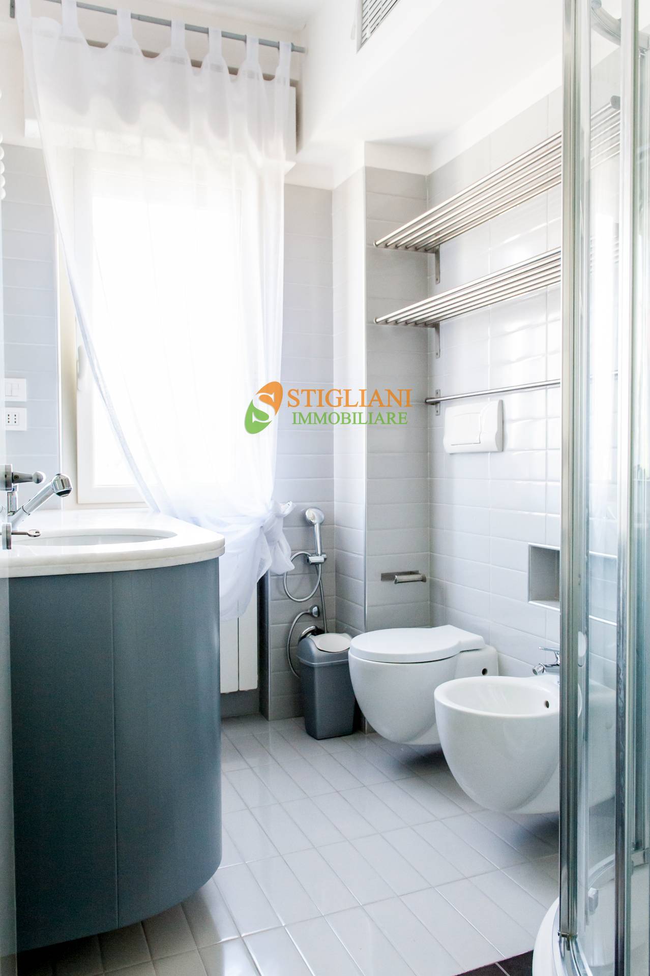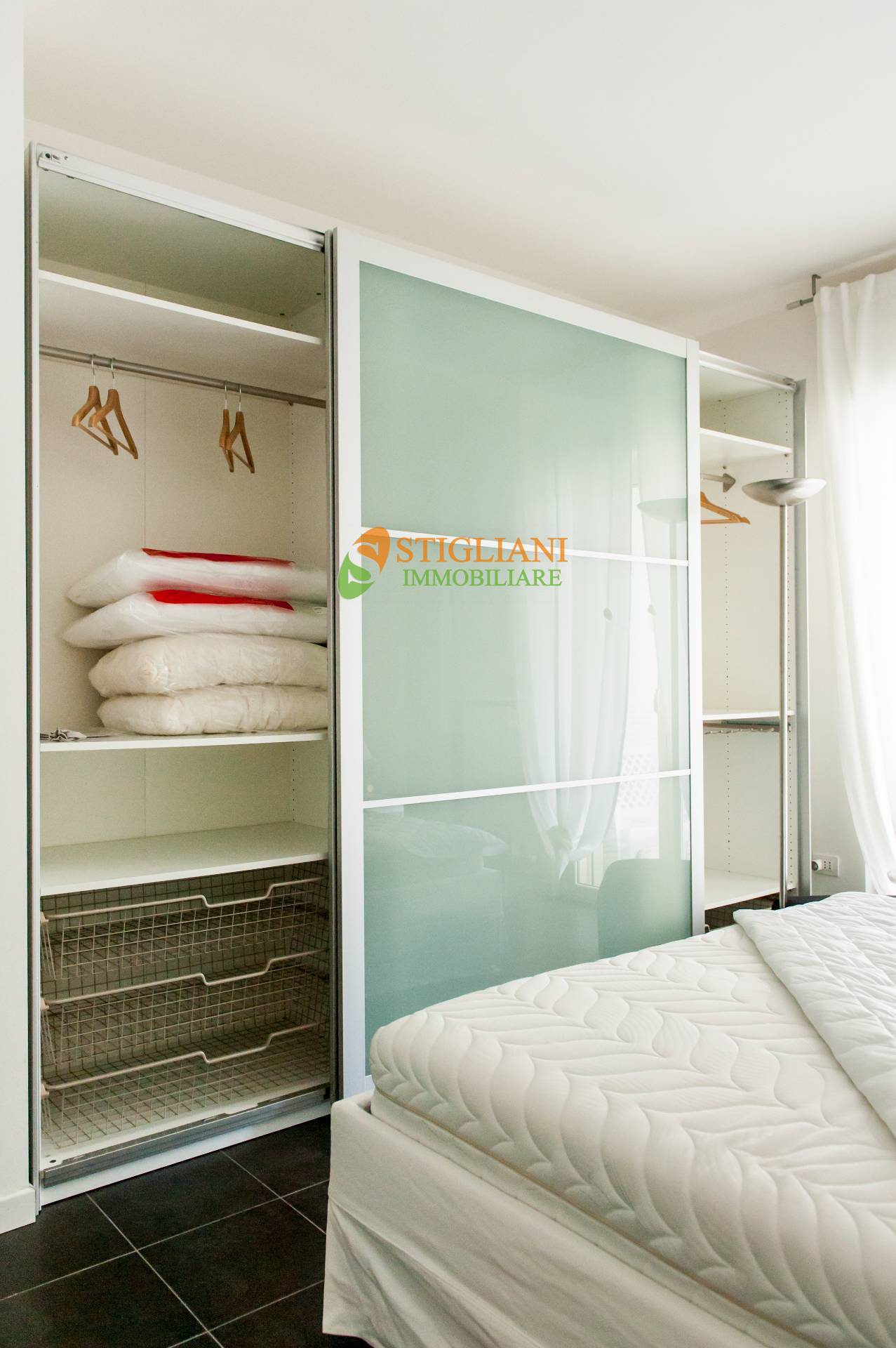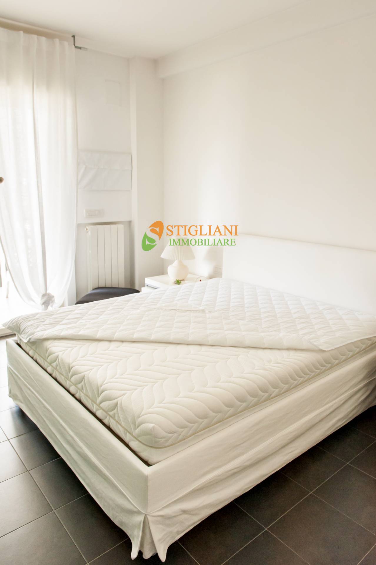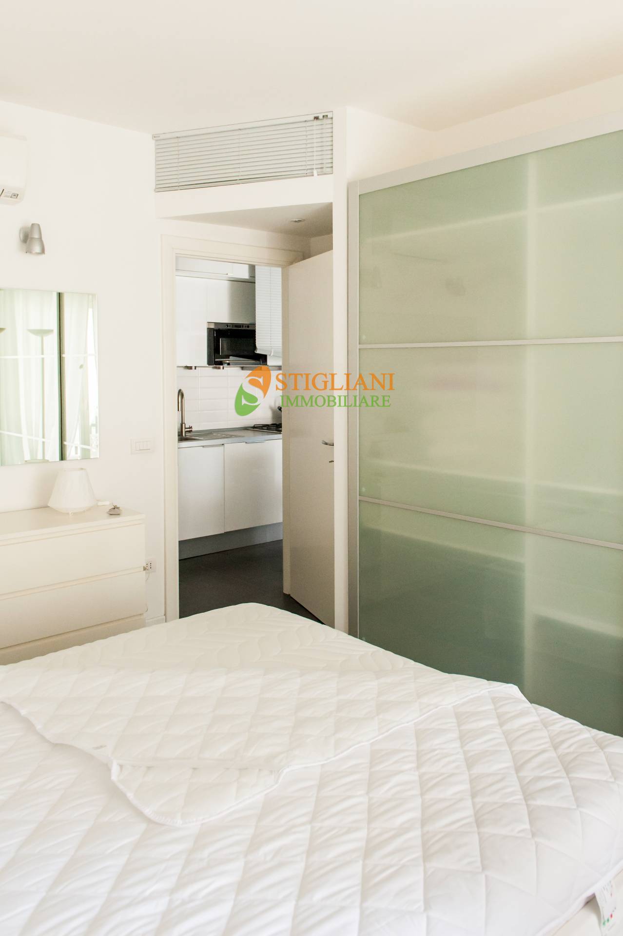 Zona centrale e servita, appartamento completamente arredato e dotato di tutti i comfort, di metri quadrati 55 circa, posto al piano secondo servito da ascensore, e composto da cucina-soggiorno, camera matrimoniale, bagno, terrazzino e garage. Impianto di riscaldamento autonomo con caldaia a condensazione e climatizzato.